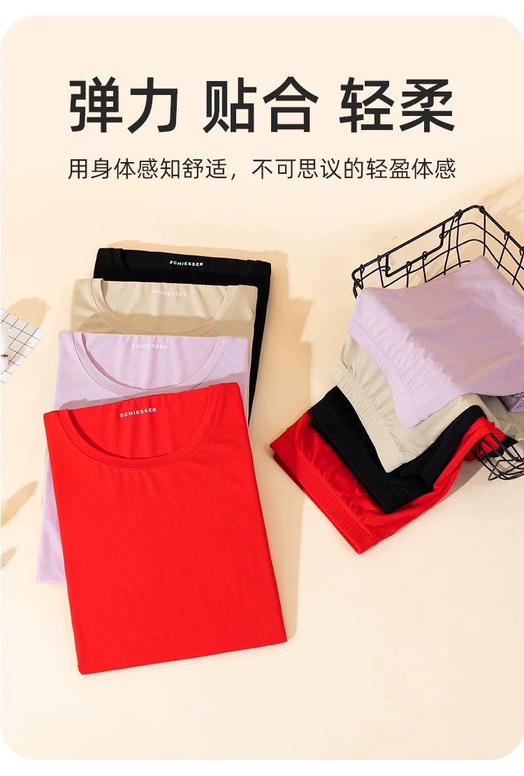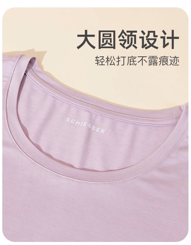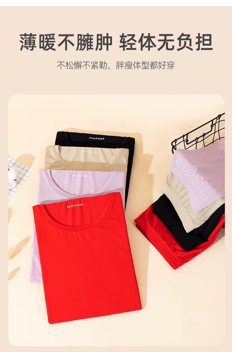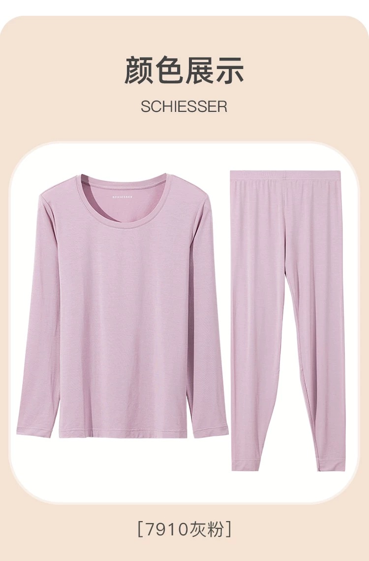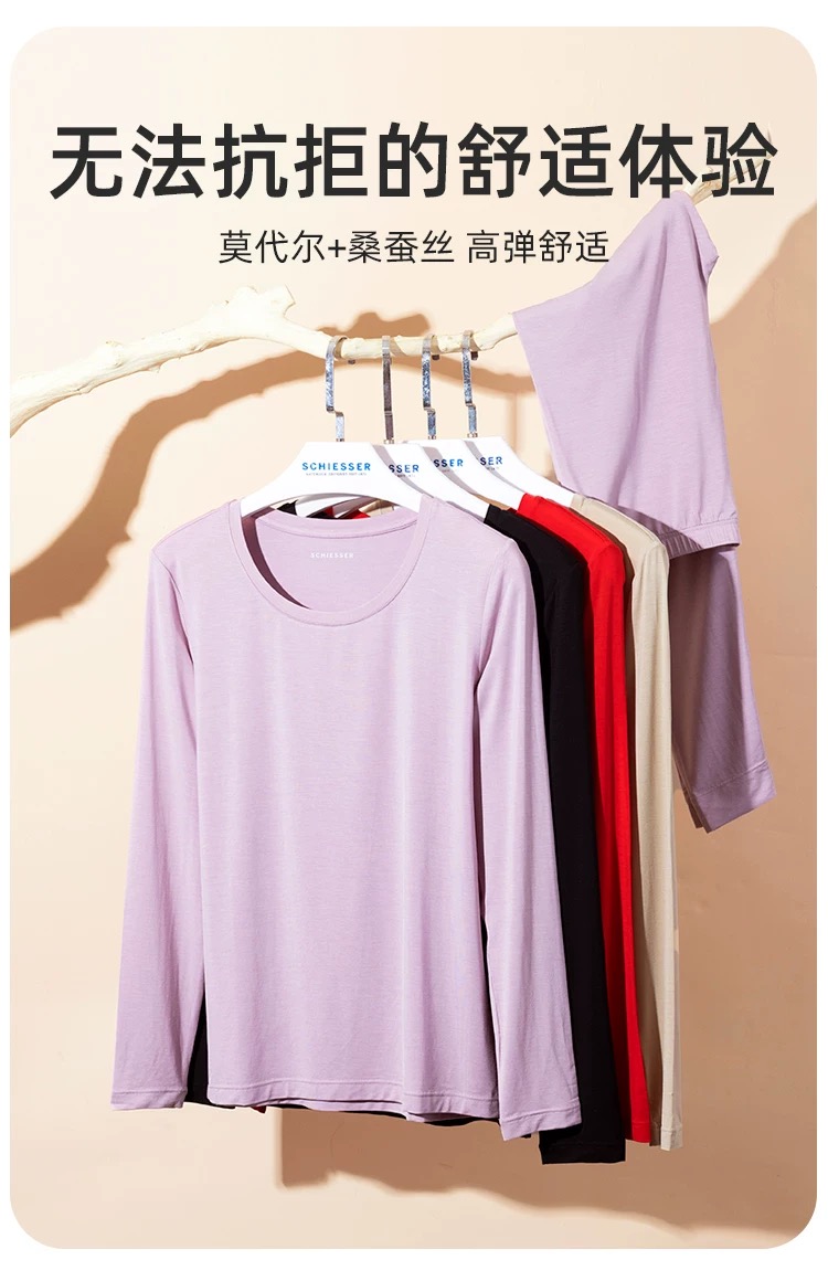 【蚕丝莫代尔情侣款】SCHIESSER德国舒雅情侣款女士莫代尔圆领爆款保暖衣打底衣套装30/21821W