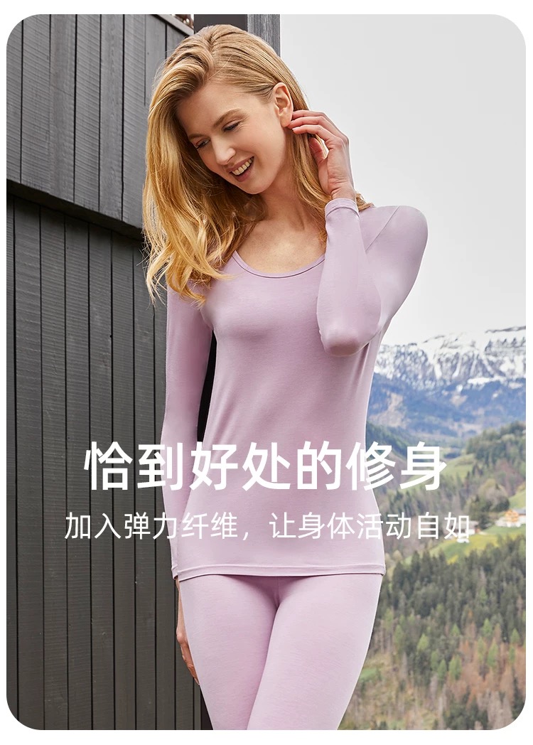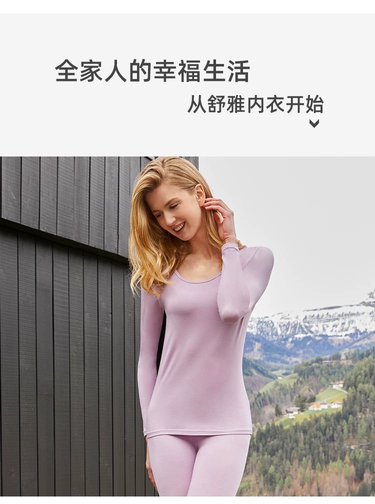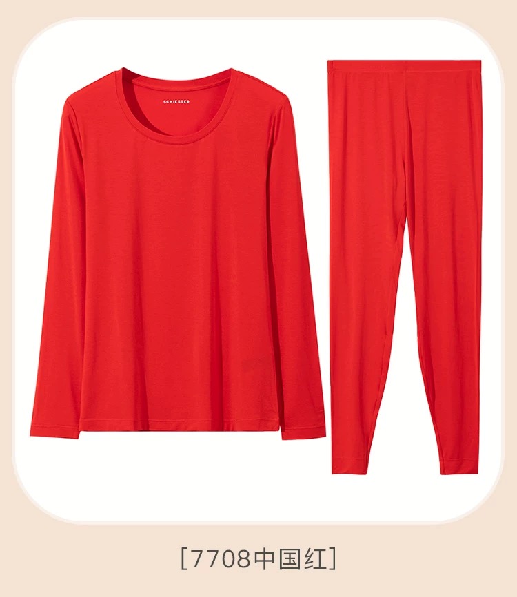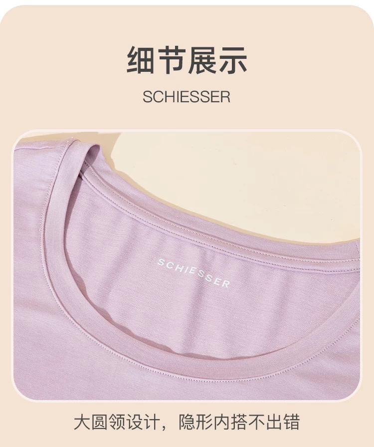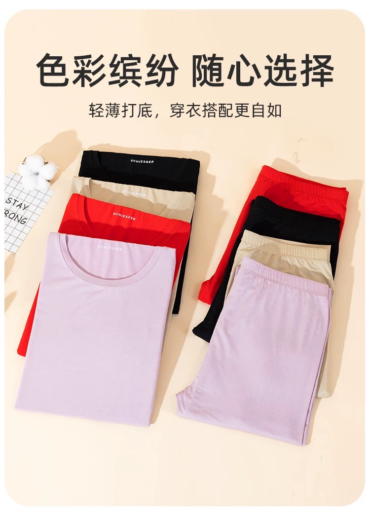 【蚕丝莫代尔情侣款】SCHIESSER德国舒雅情侣款女士莫代尔圆领爆款保暖衣打底衣套装30/21821W