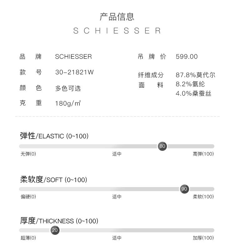 - 来自德国的SCHIESSER舒雅,专注做内衣一百四十余年,不遗余力的材料创新,因材而异的专业剪裁,健康环保的加工技术以及充满文化关注的时尚主题,做你认识之外的舒适内衣。
