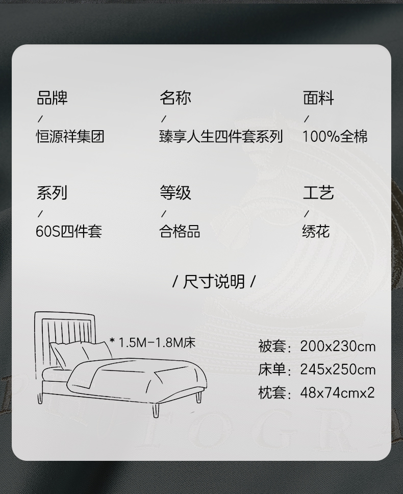 恒源祥Fazeya彩羊臻享人生60s长绒棉床单四件套(被套200*230cm、床单245*250cm、枕套48*74cm*2)【分仓直发,72小时发货,周末节假日不发货】