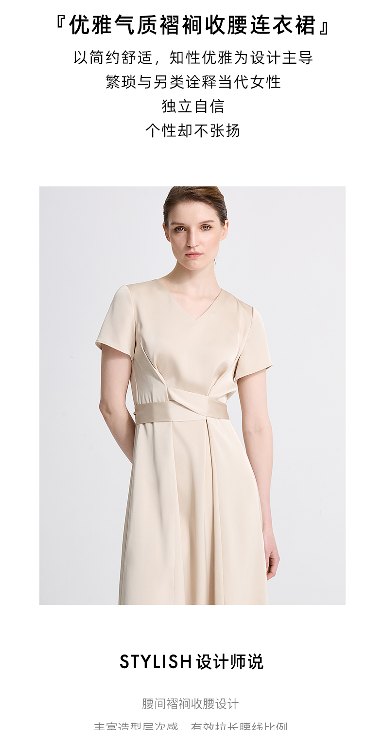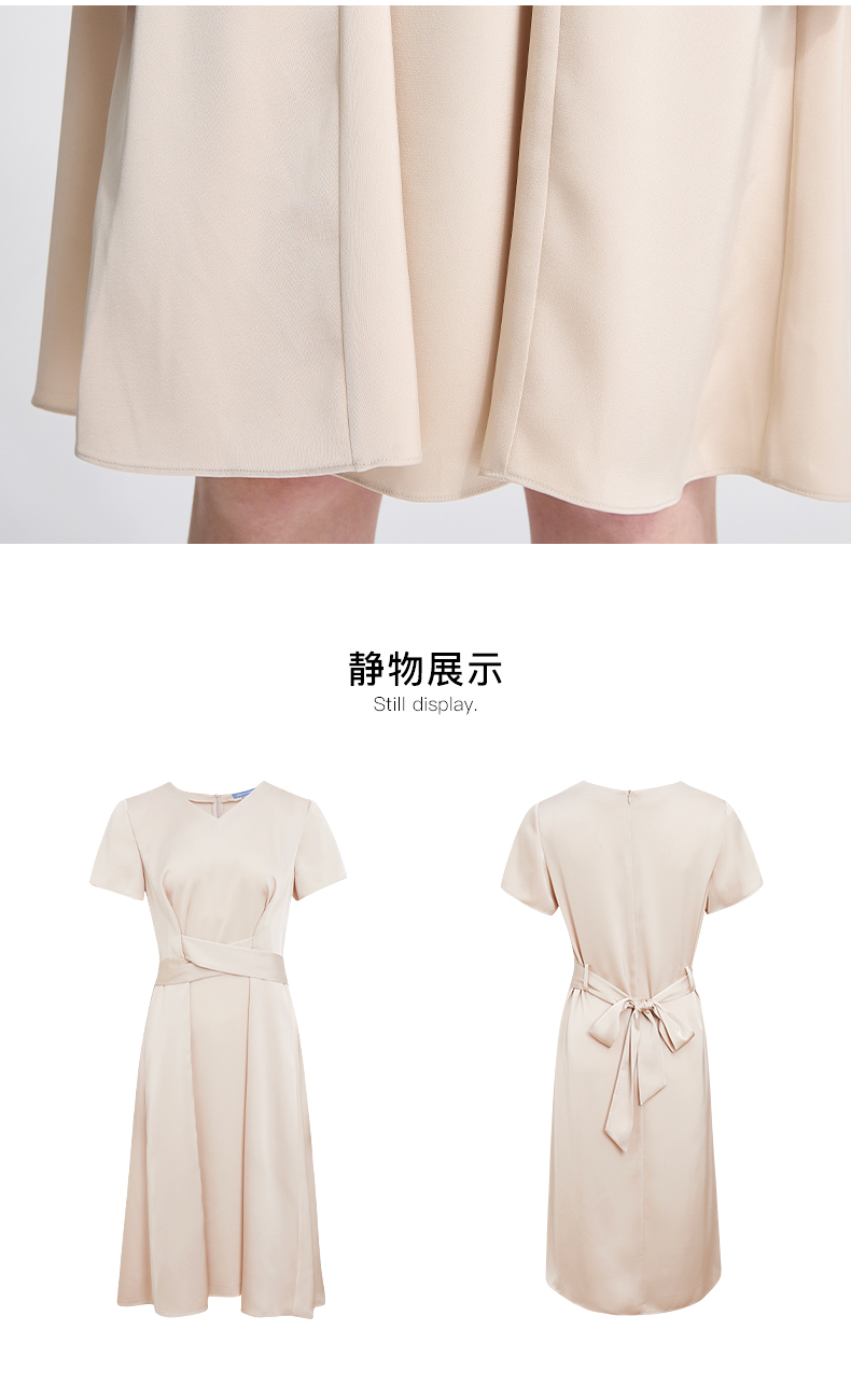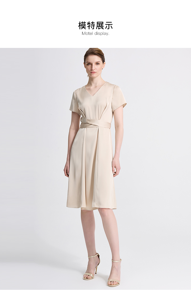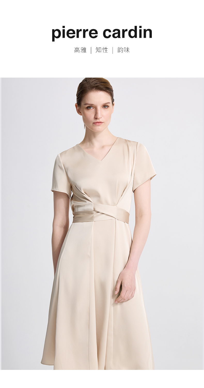皮尔卡丹女装夏季新款通勤纯色职业修身连衣裙C42DS18M1