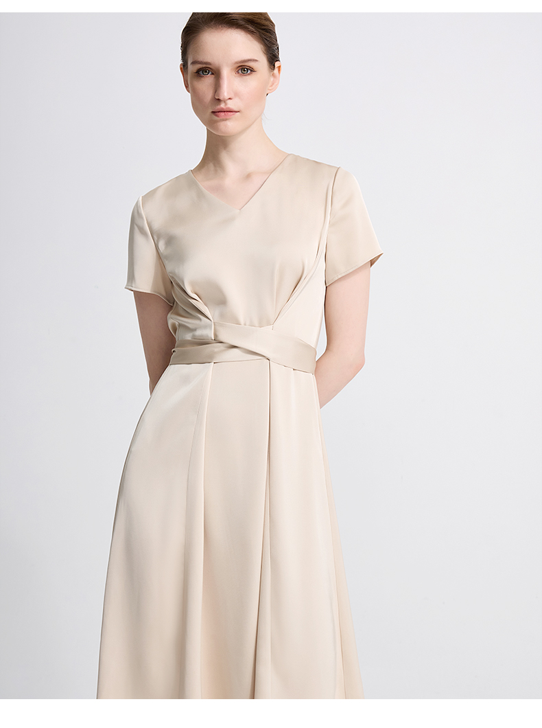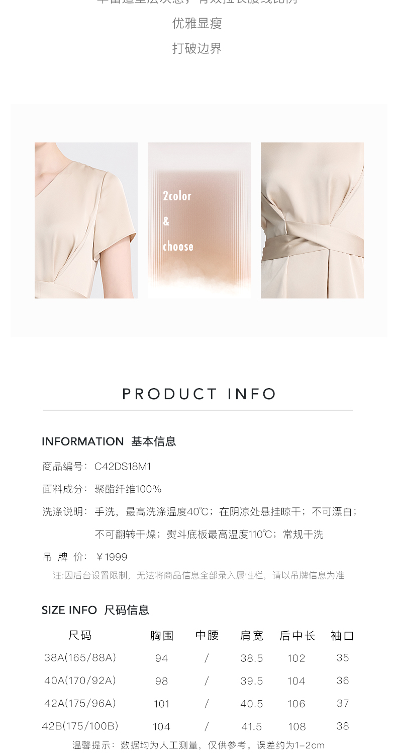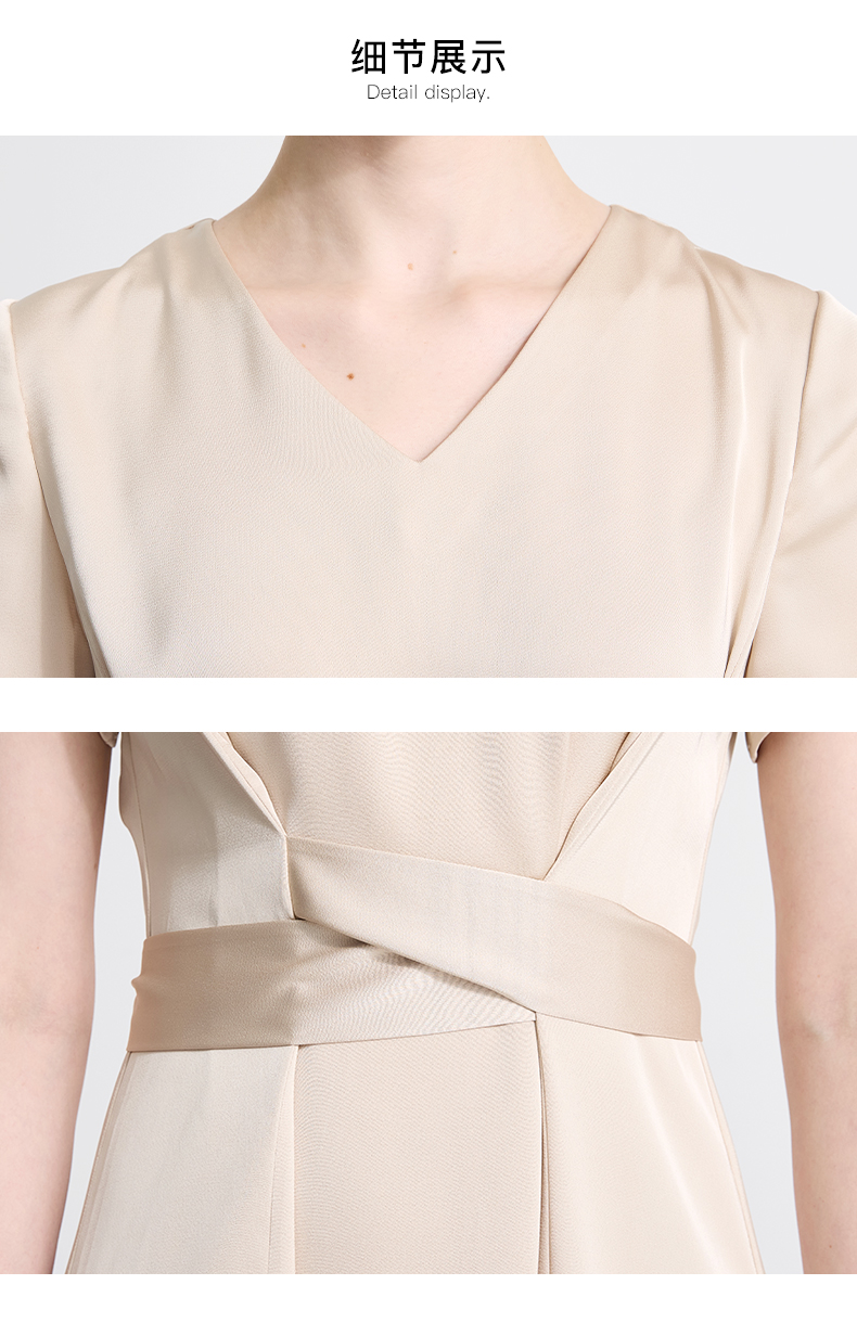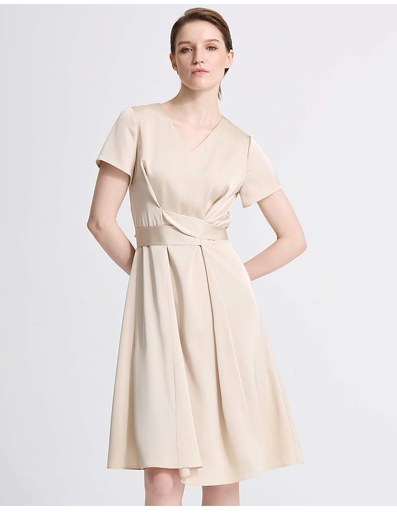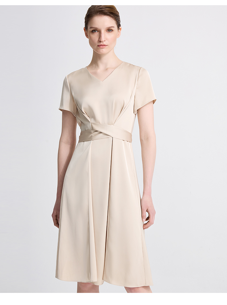 皮尔卡丹女装夏季新款通勤纯色职业修身连衣裙C42DS18M1