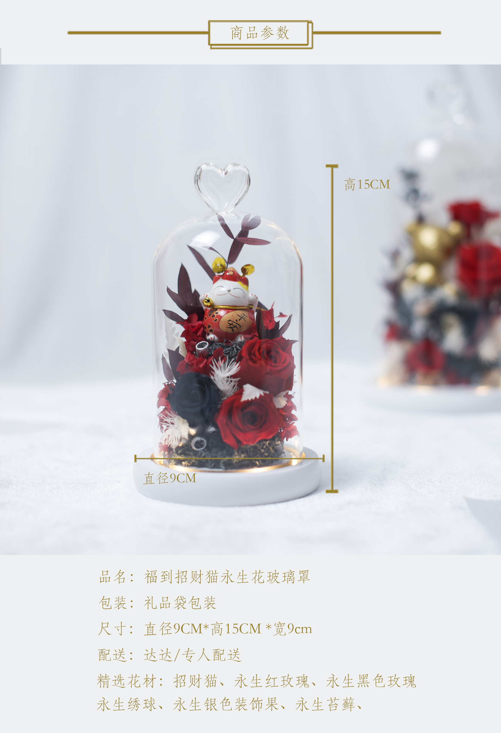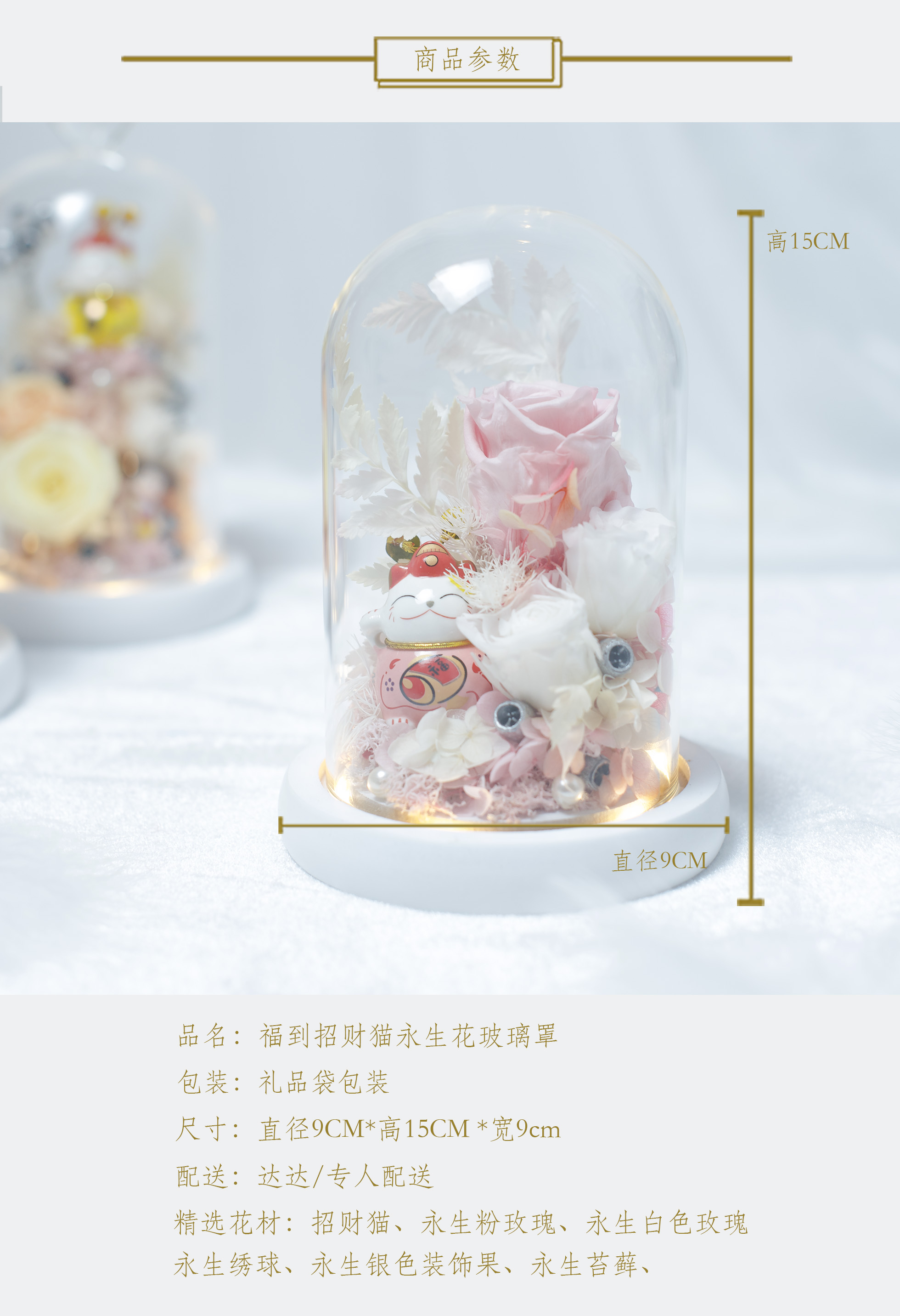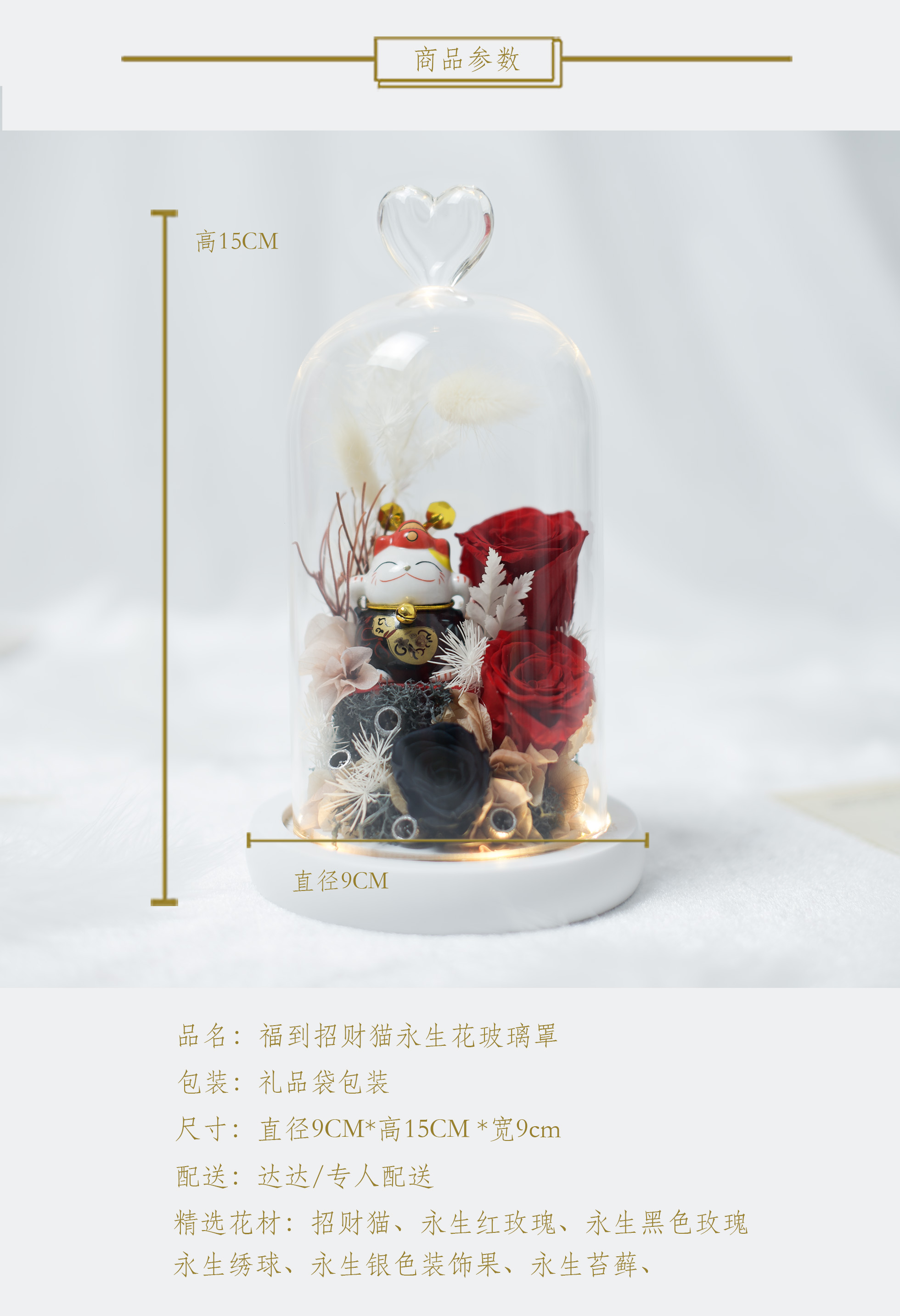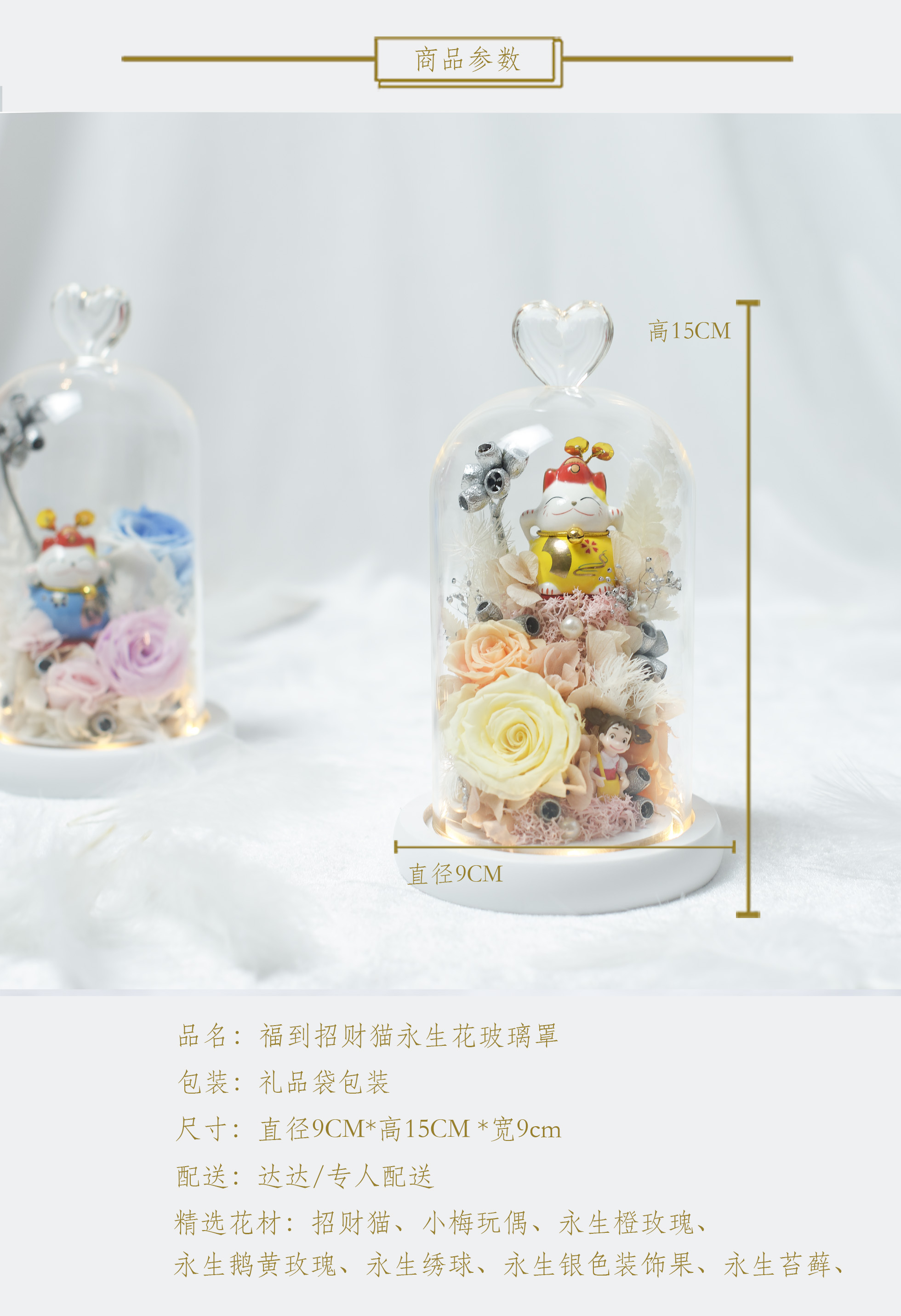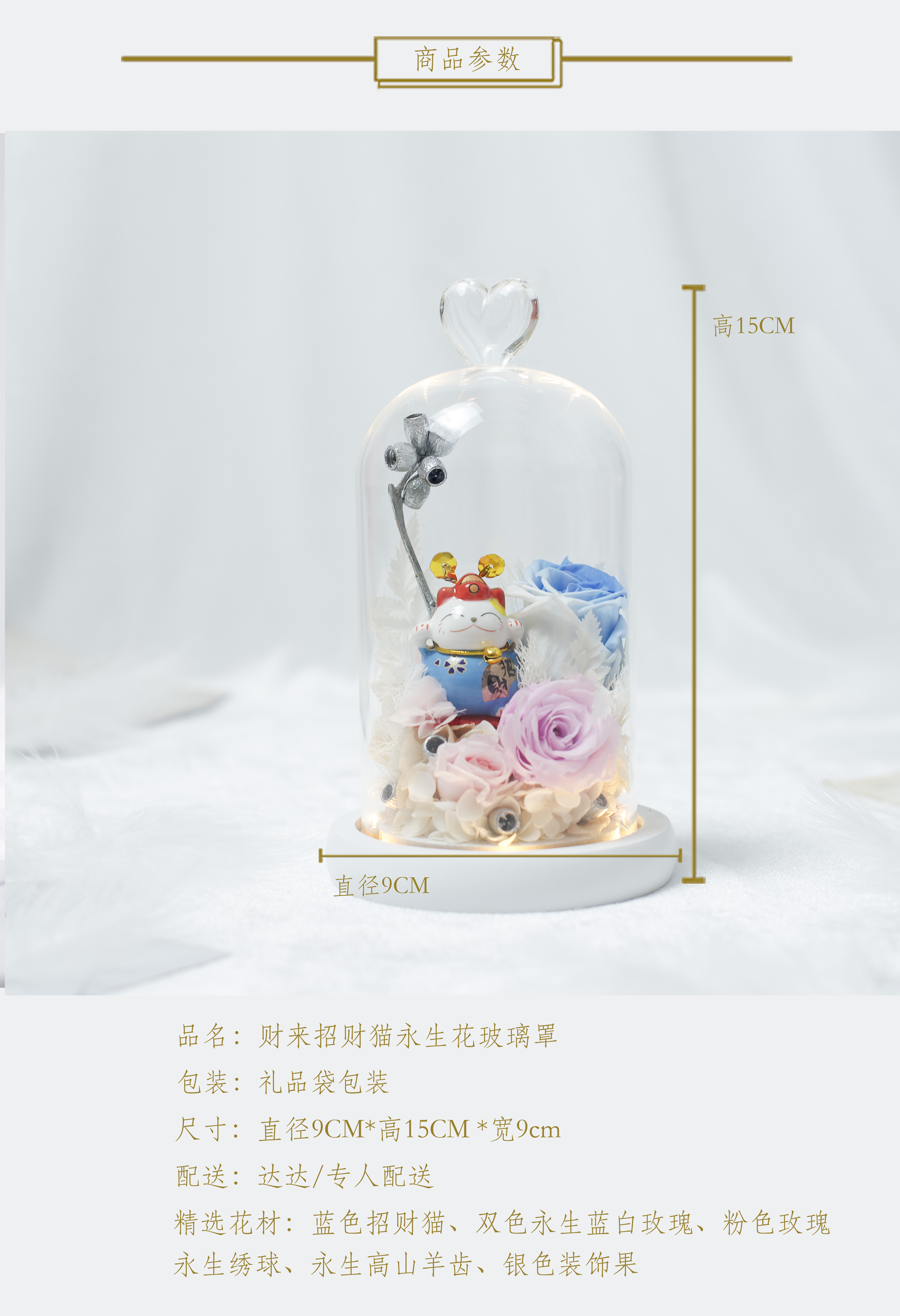 《招财猫》- 永生花玻璃罩「5款可选」