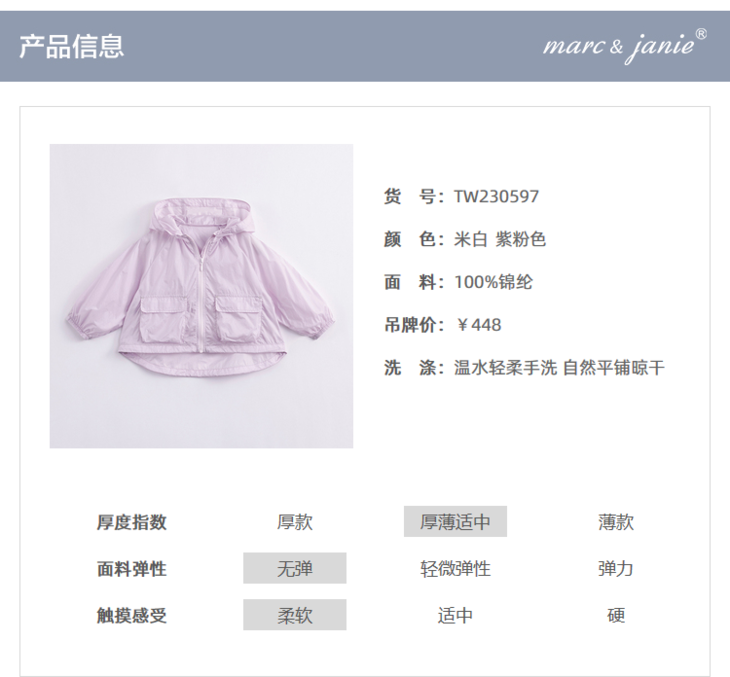 【真正防紫外线】马克珍妮夏装新款 女童透气防晒衣230597