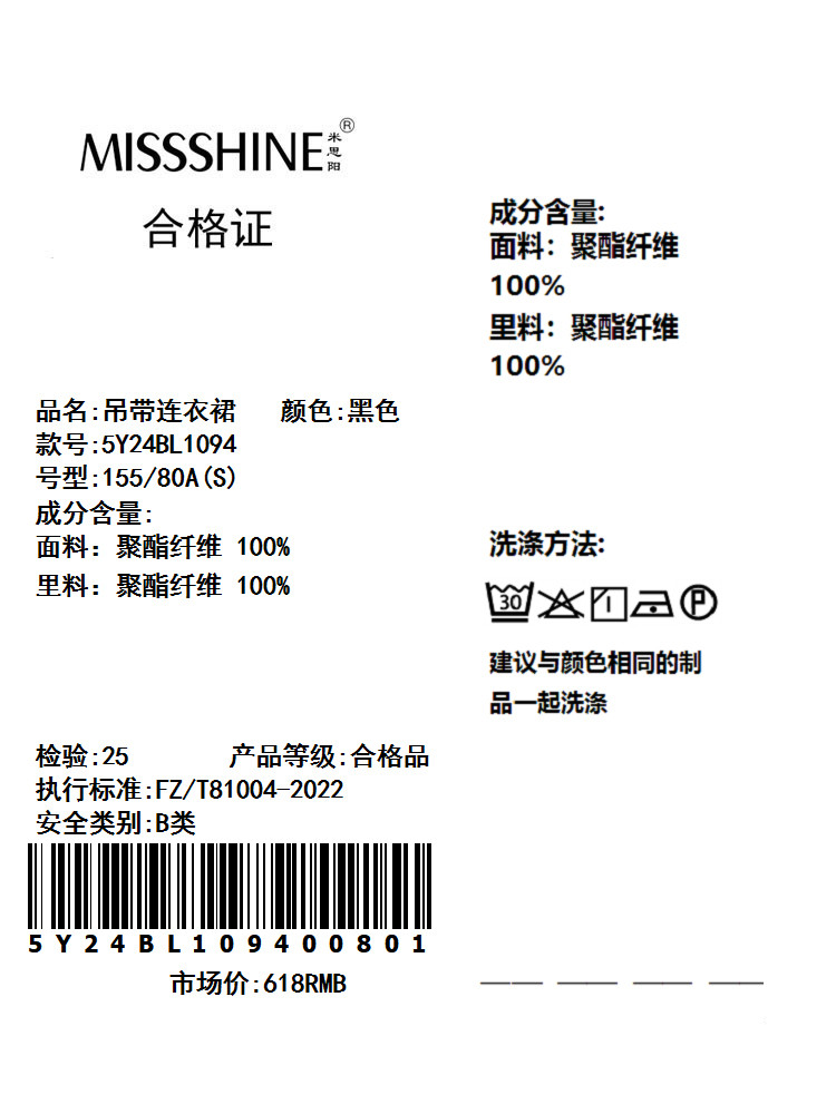 | XL | 170/92A | 吊带 | 97.5 | 无袖 | 82.5 | 110 |