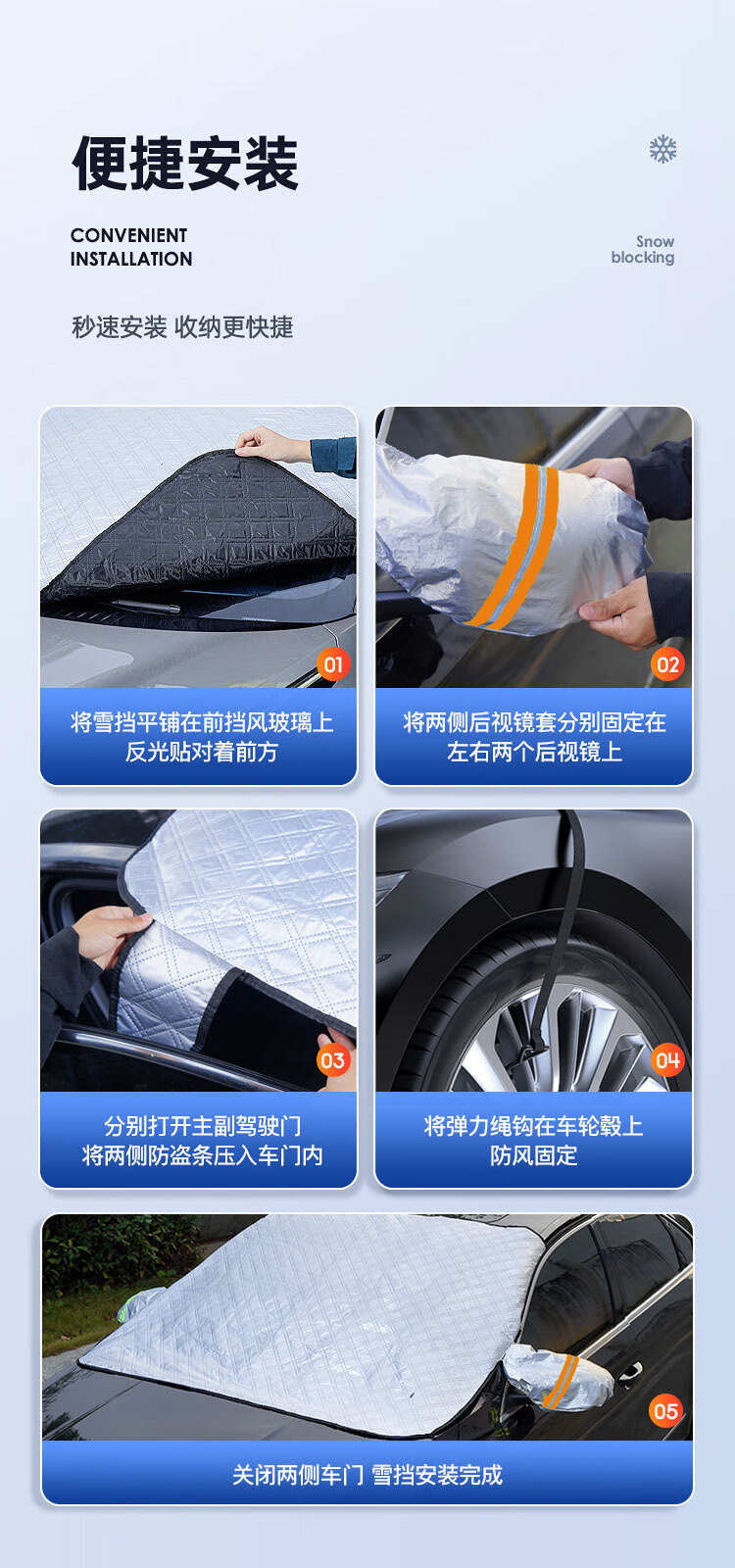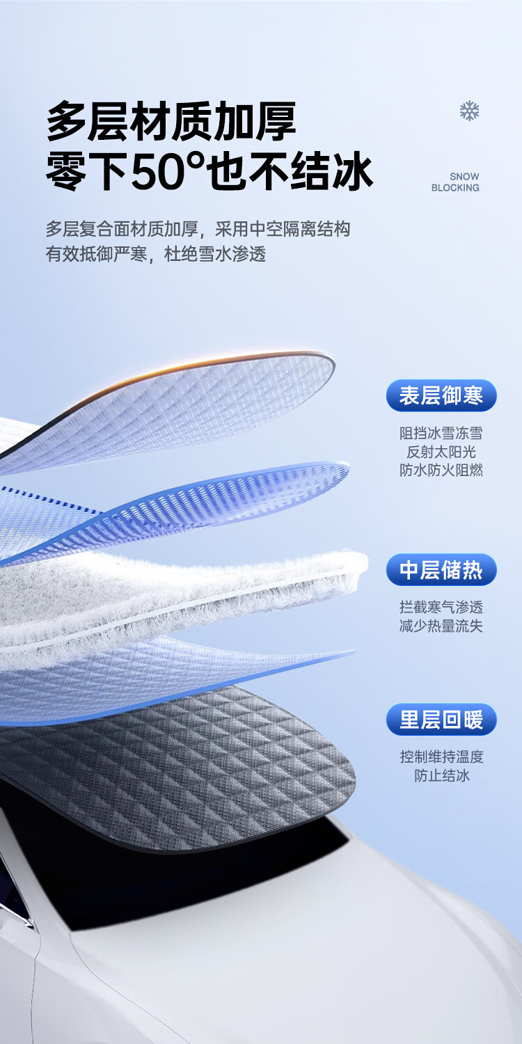 「防雪防冻!加厚加棉」汽车玻璃雪档前挡风玻璃防霜防雪加厚半罩车衣冬季磁吸铝膜遮雪挡装饰 商品图4