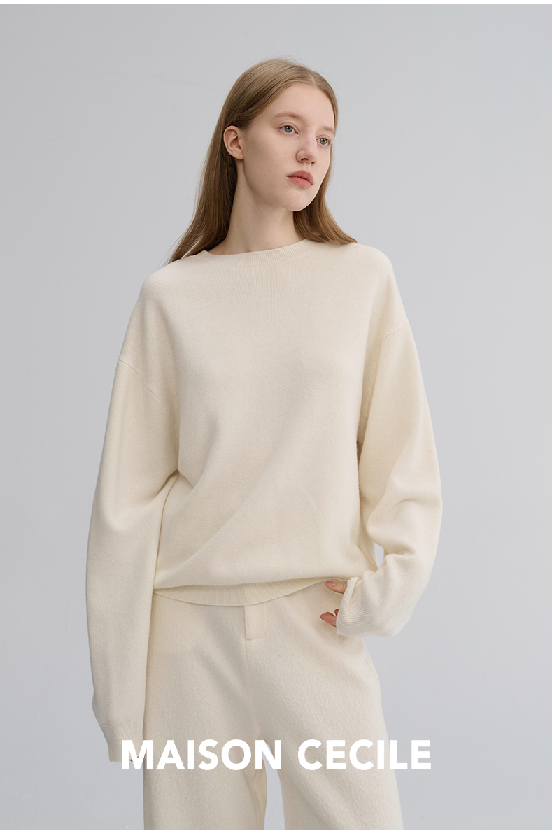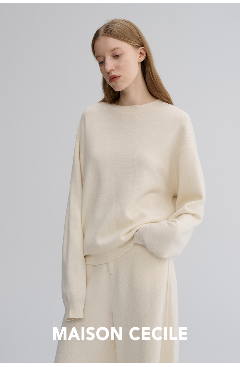 MAISON CECILE 两色|宽松中性卫衣感重工耗时廓形简约松弛针织毛衣