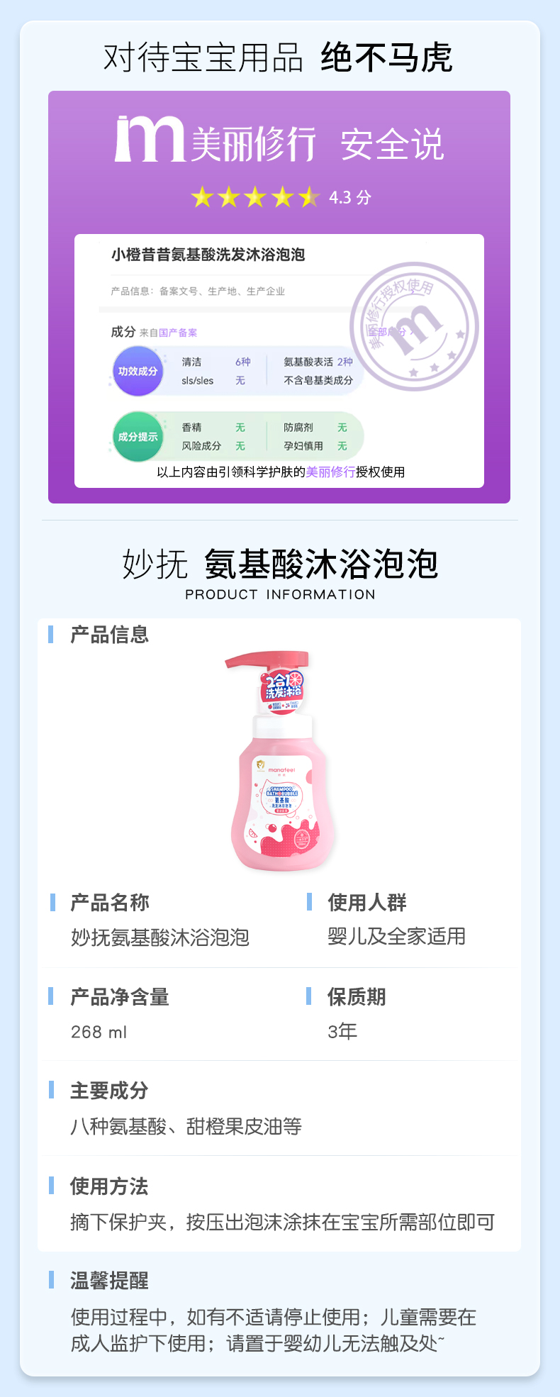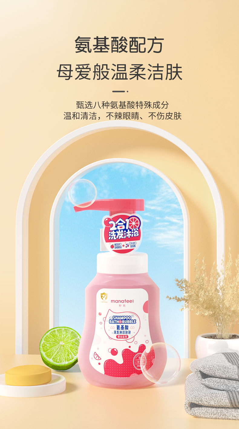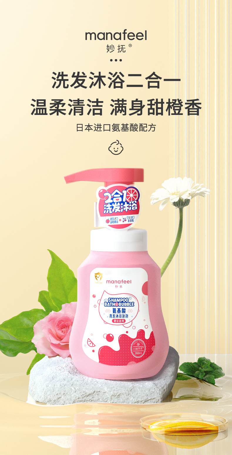 妙抚婴儿洗发沐浴二合一儿童沐浴露乳新生宝宝洗护泡泡浴洗发水液MF-31650