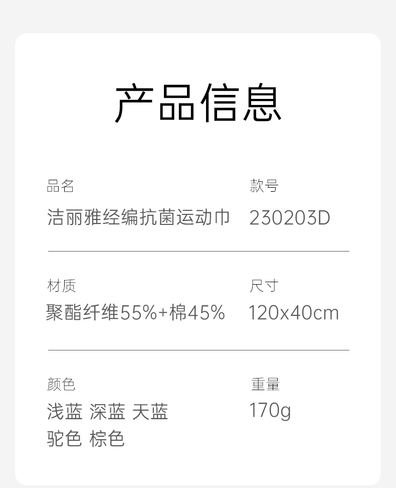 洁丽雅抗菌运动巾吸水毛巾运动家用速干吸汗健身房篮球跑步不掉毛