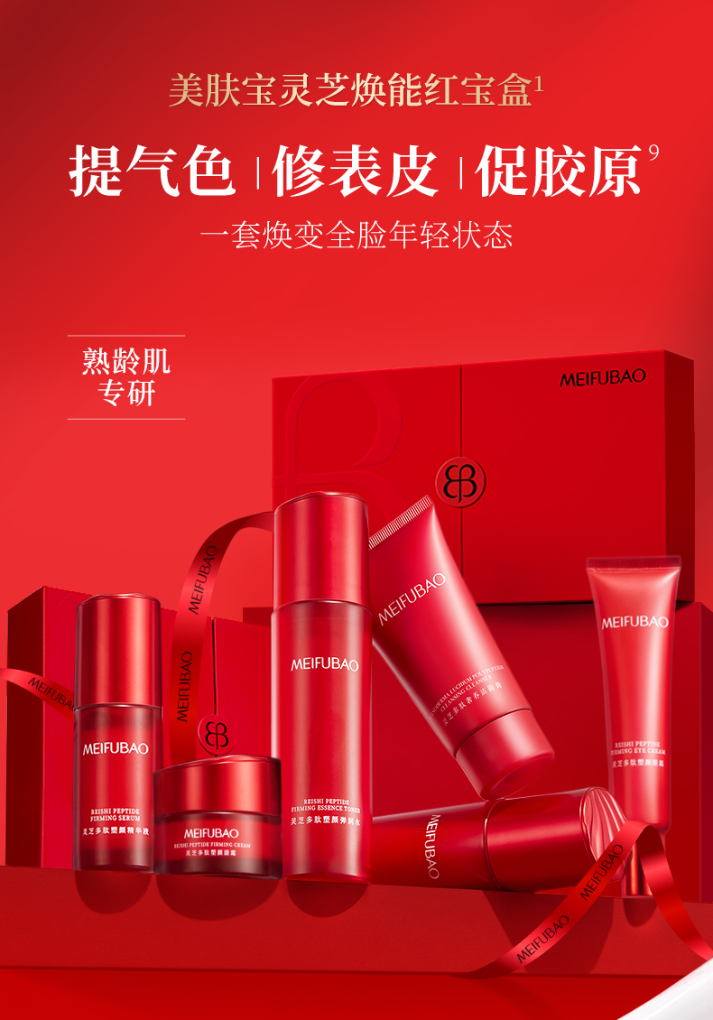 【年货节直降】美肤宝灵芝多肽塑颜弹润套装 洁面/水/乳/焕肤礼盒 淡纹紧致面部护肤品