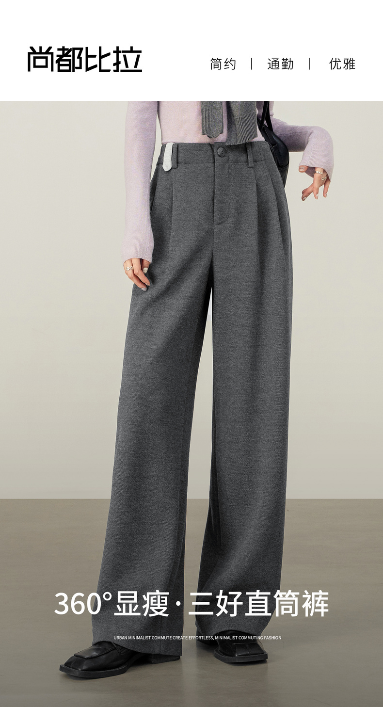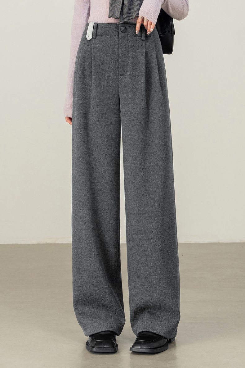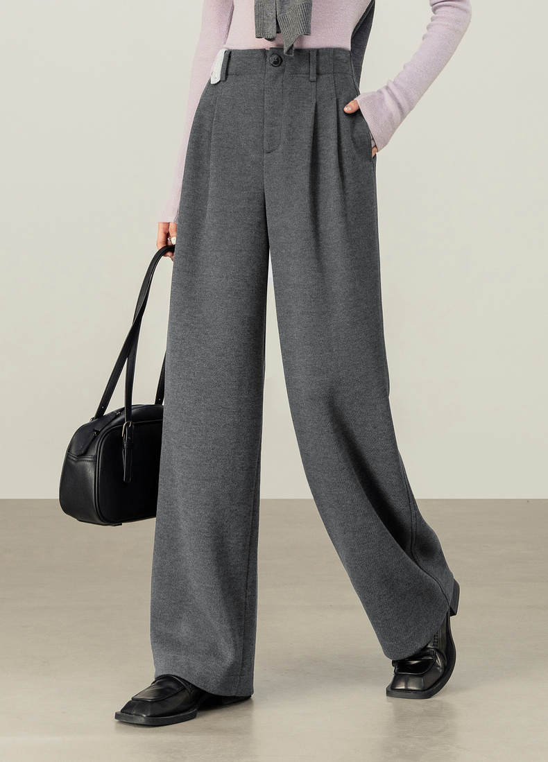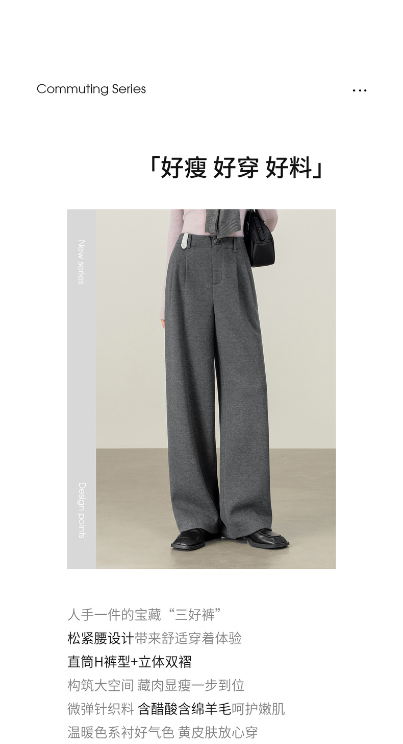 【内购】【含醋酸含绵羊毛】都市通勤松紧腰立体双褶藏肉显瘦直筒针织长裤-154K58922
