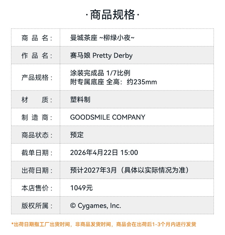 【GSC预售定金】1/7标准比例 曼城茶座 ~柳绿小夜~ 手办模玩 赛马娘 Pretty Derby