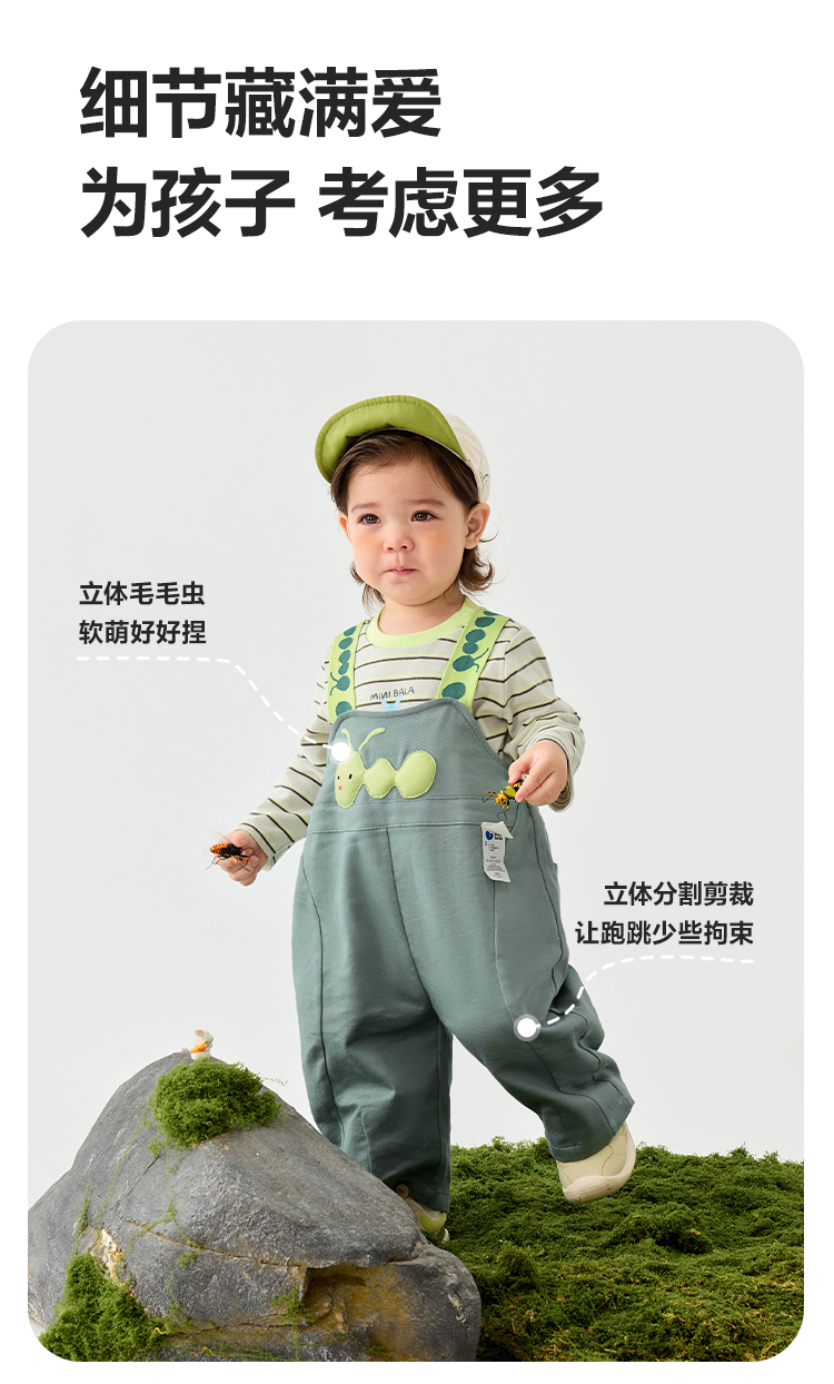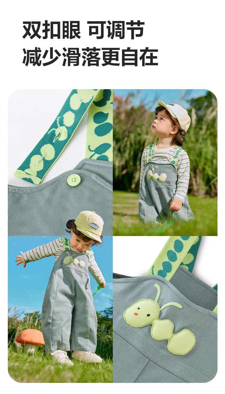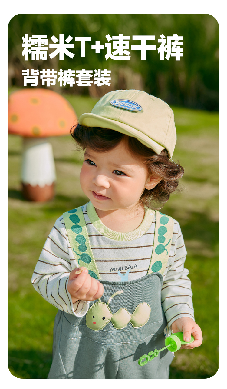 迷你巴拉背带裤套装男童女童宝宝吸湿速干萌趣T恤两件套