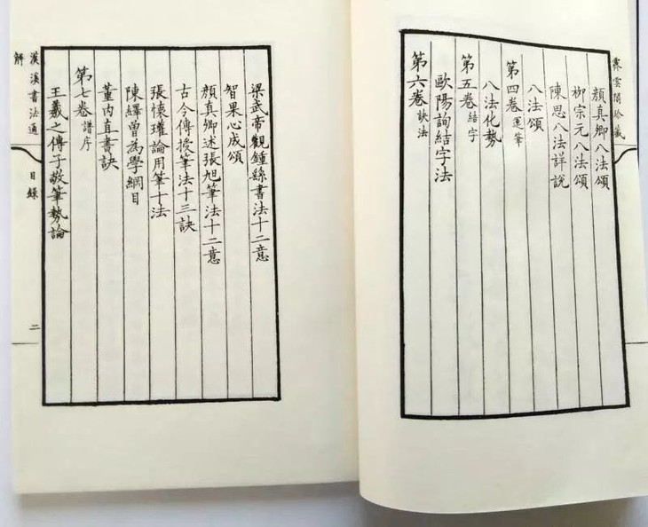 卷六诀法(梁武帝观钟繇书法十二意,智果心成颂,颜真卿述张旭笔法十二意,古今传授笔法十三诀,张怀瓘论用笔十法,陈铎曾为学纲目,董内直书诀)