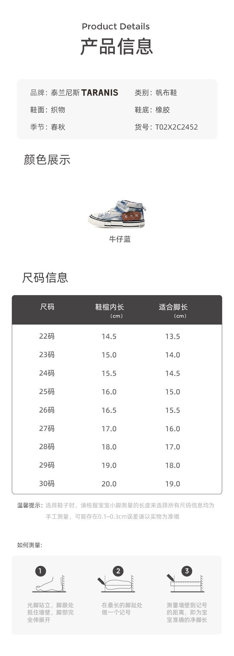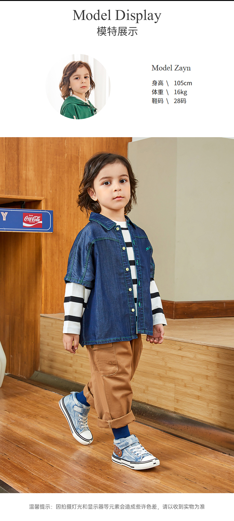 泰兰尼斯秋季小童段经典牛仔百搭帆布鞋板鞋T02X2C2452