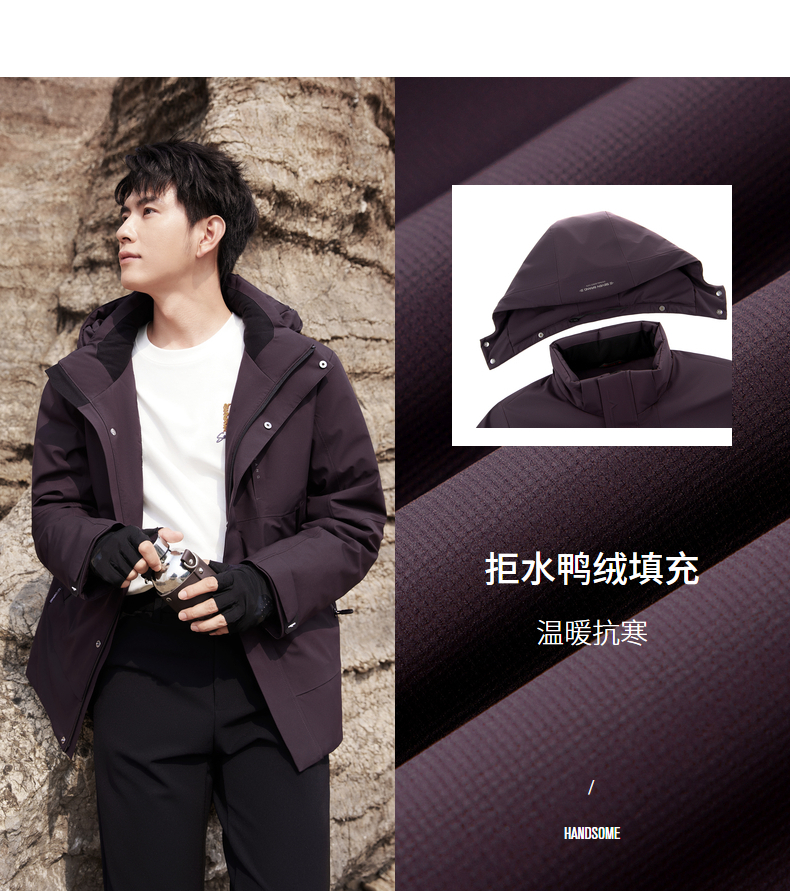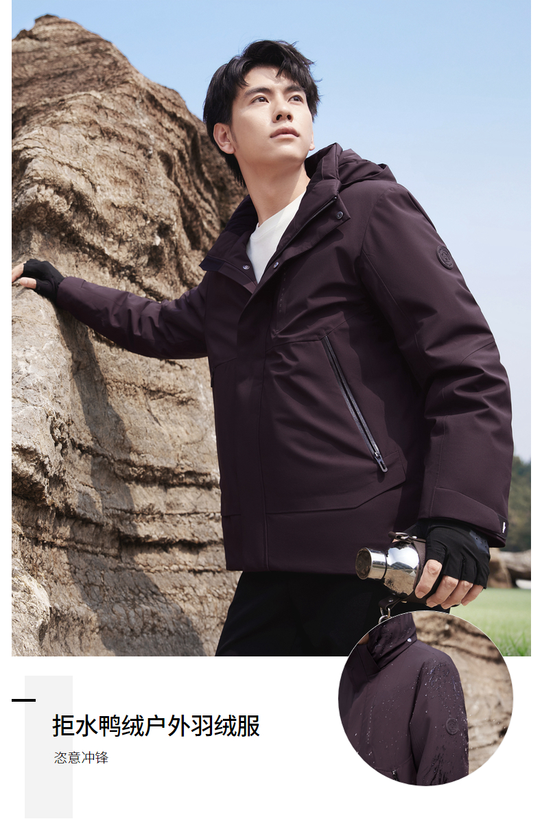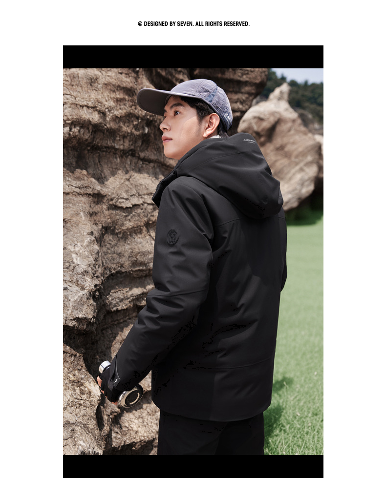 【户外/三防/拒水鸭绒】柒牌可拆卸连帽羽绒服男厚款保暖羽绒外套129E70650