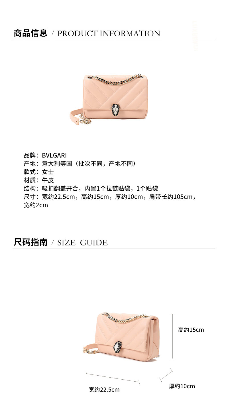 【国内现货】BVLGARI/宝格丽 2021款 女士小号SERPENTl CABOCHON系列牛皮蛇头扣衔缝单肩斜挎包 290612