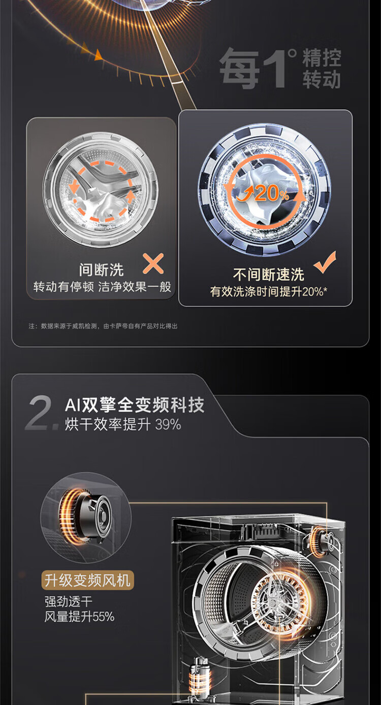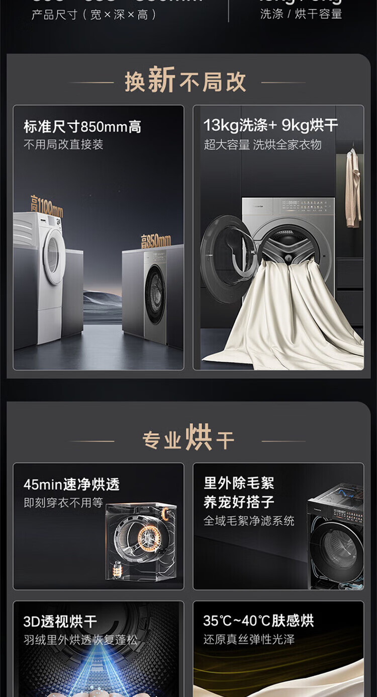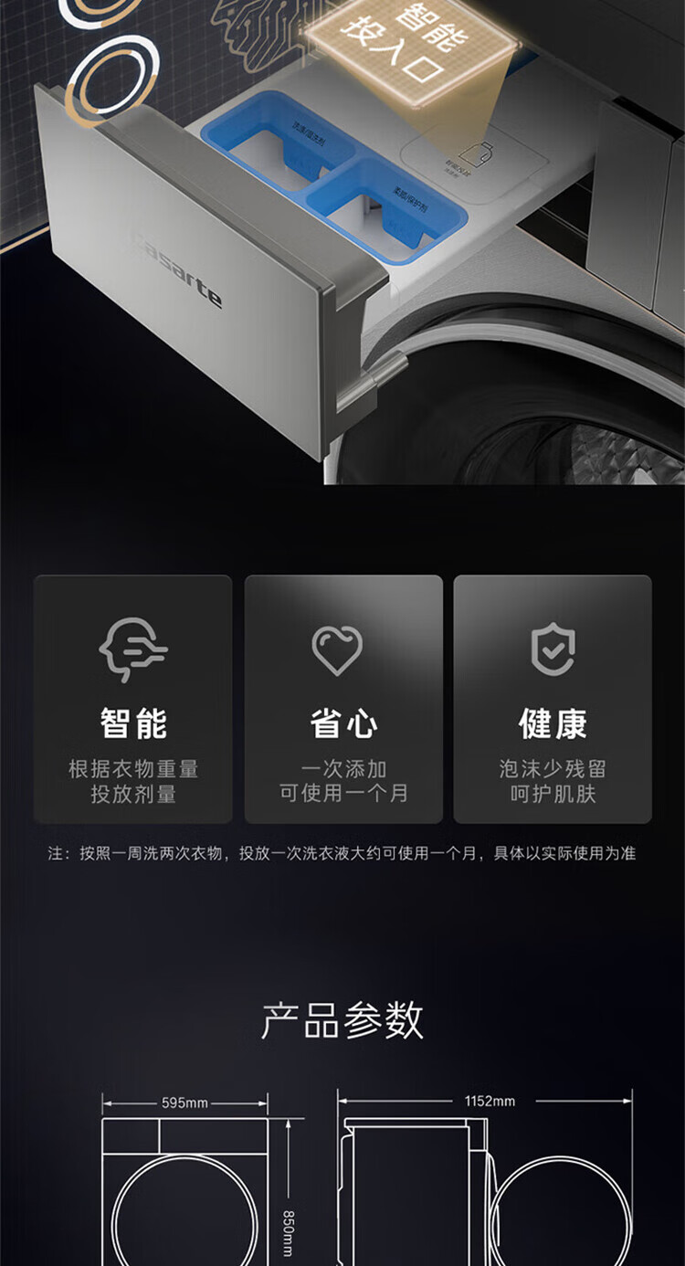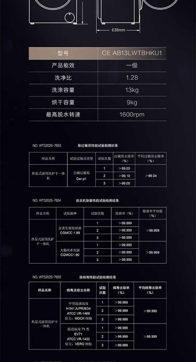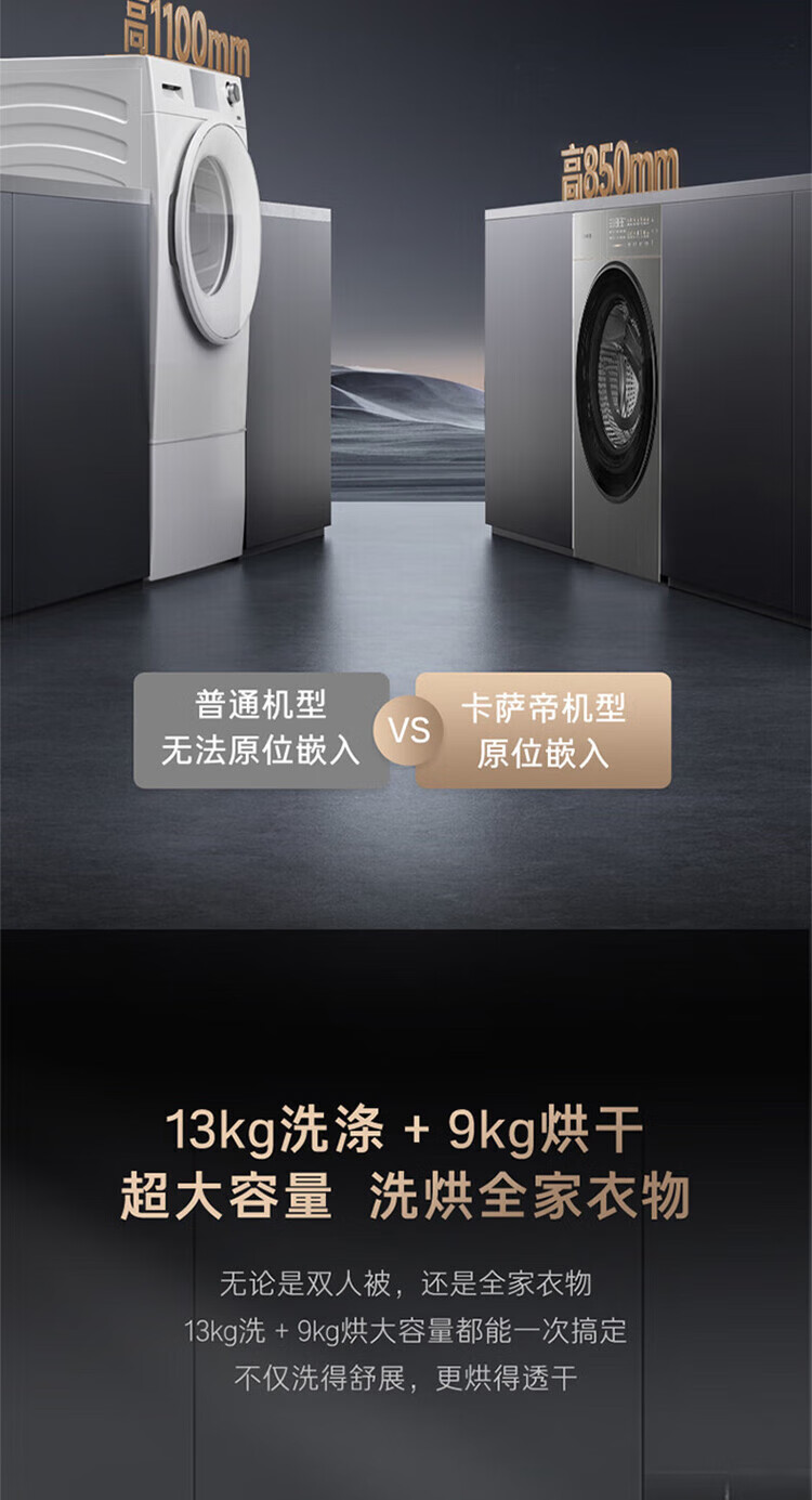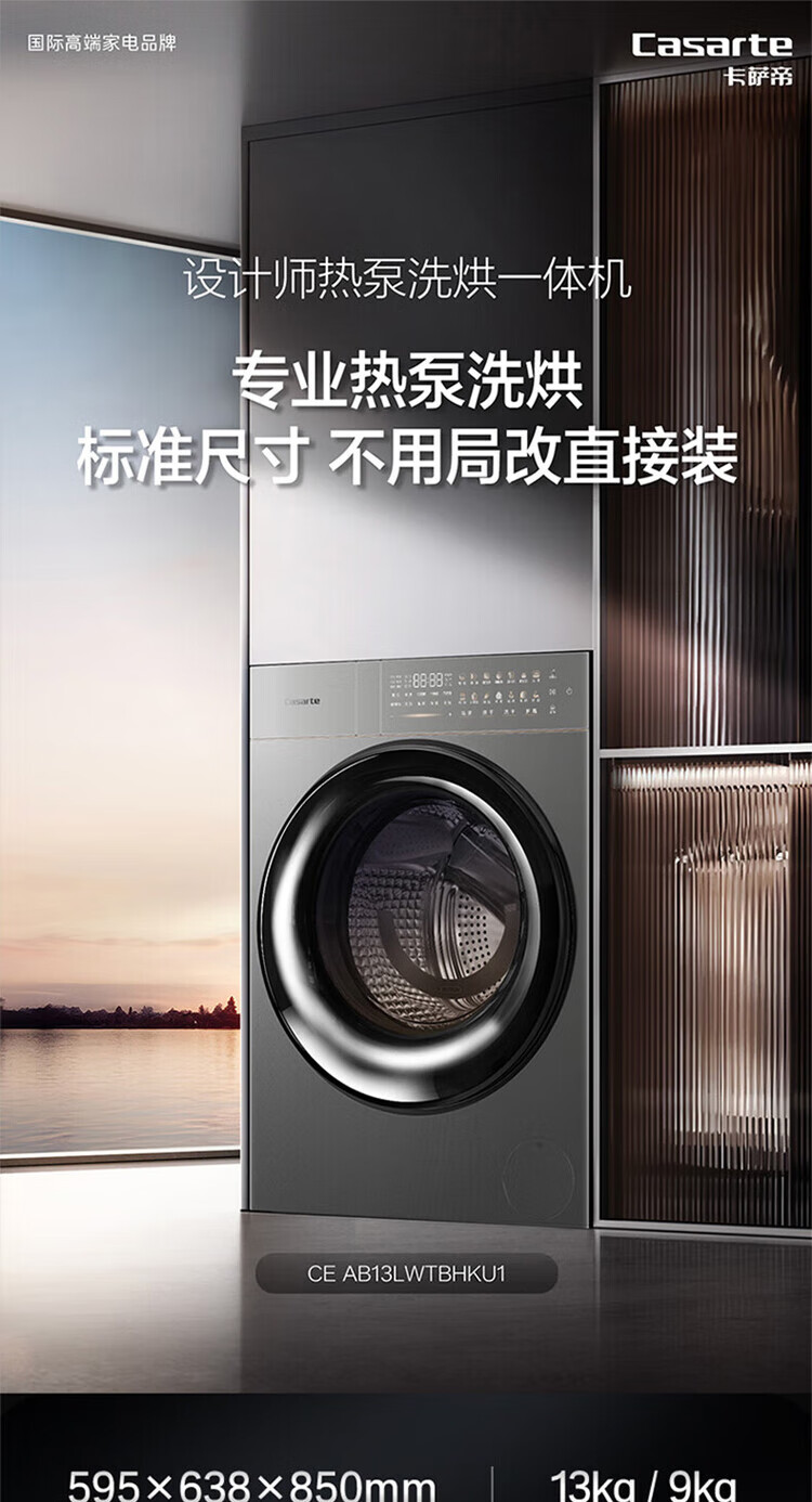 卡萨帝13公斤滚筒洗衣机 设计师热泵洗烘一体机 大容量 AI双擎全变频 3D透视烘干 13公斤热泵洗烘一体机CE AB13LWTBHKU1