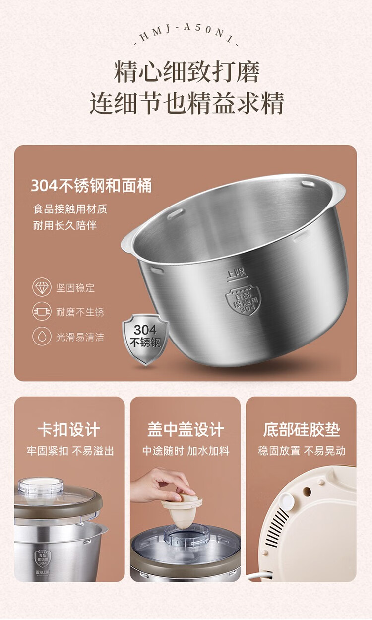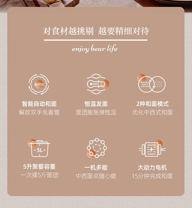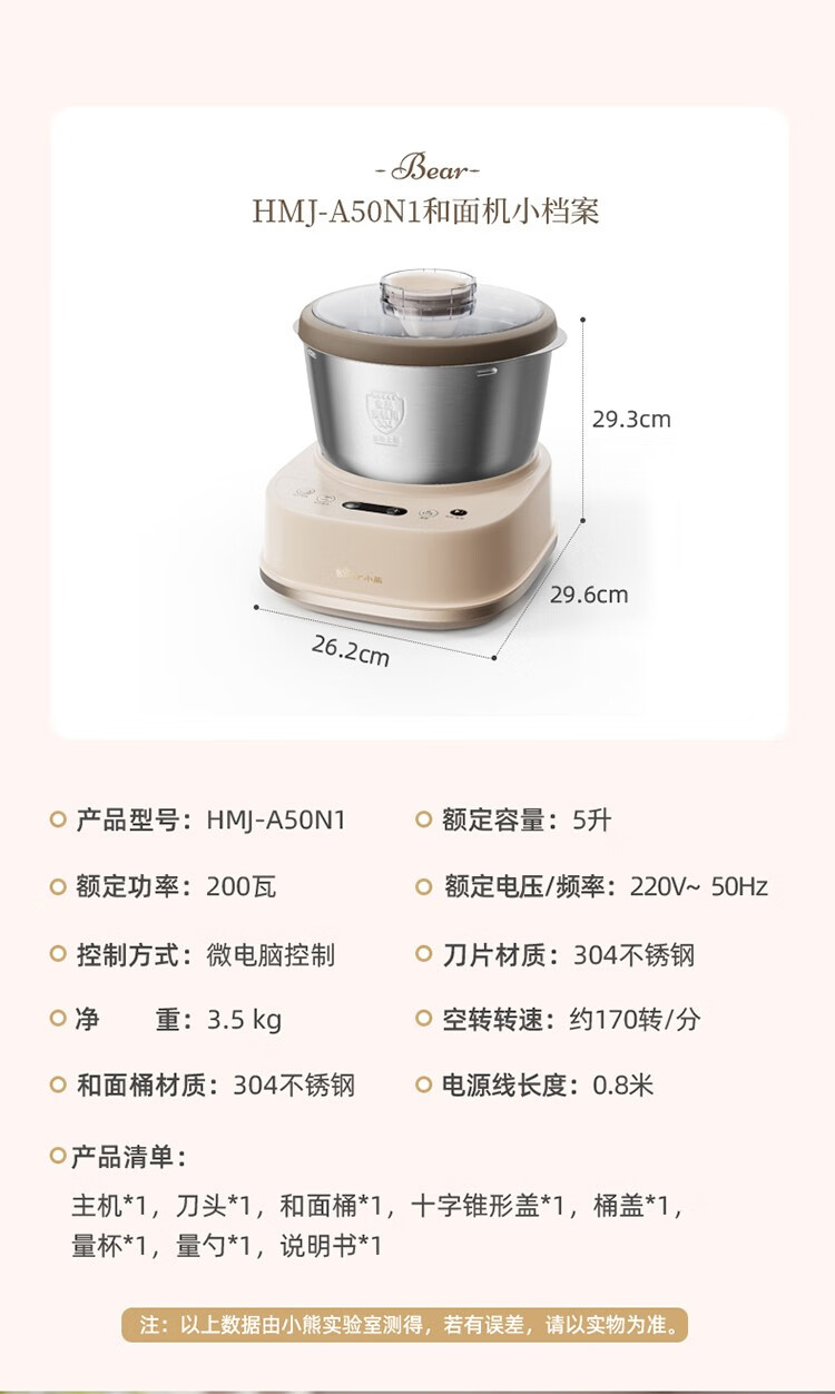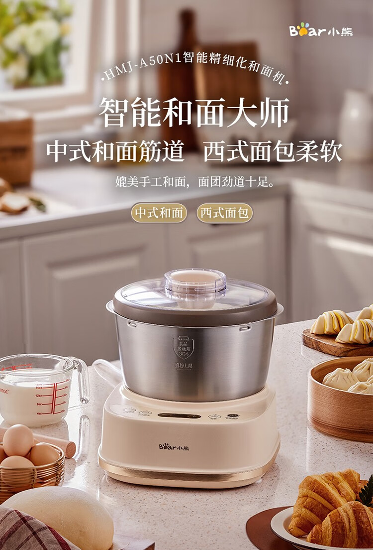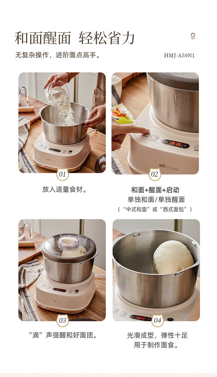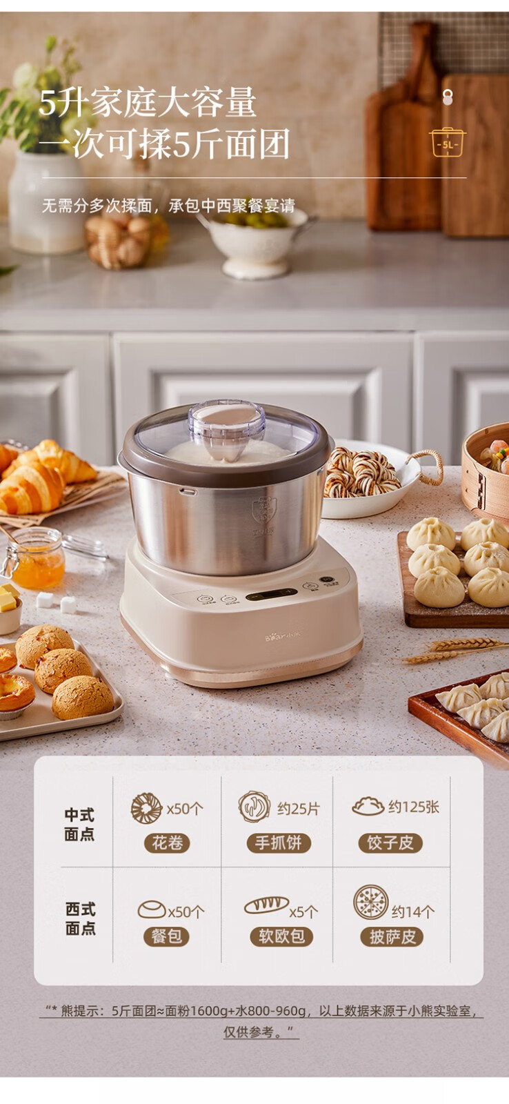 小熊(Bear) 和面机 家用定时揉面机发面机醒面全自动厨师机搅面器搅拌器微电脑控制 HMJ-A50N1 5L智能升级款 5L