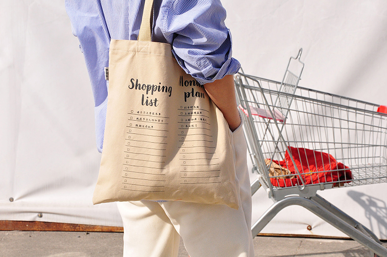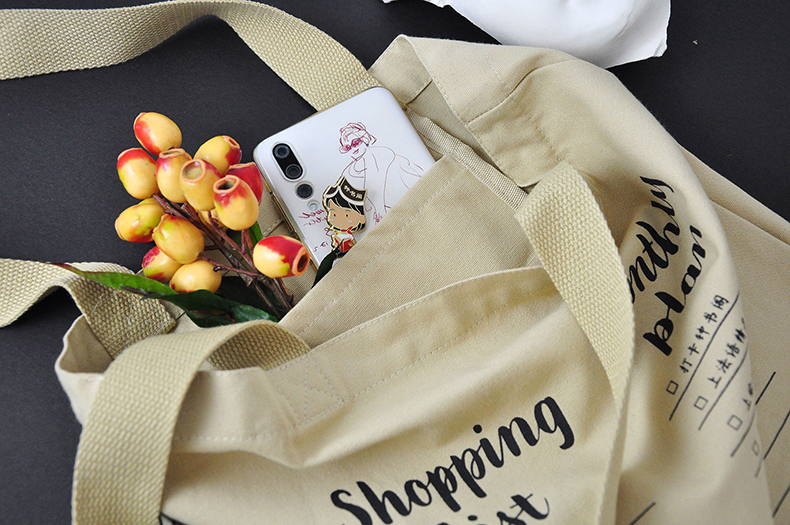 钟书阁购物清单米色帆布袋帆布包单肩包女ins文艺大容量手提布袋学生手提袋购物袋环保袋包