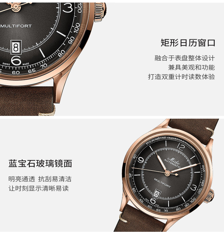 | 防水 | 50 m | 表扣 | 棕色古色皮革表带 针扣 |