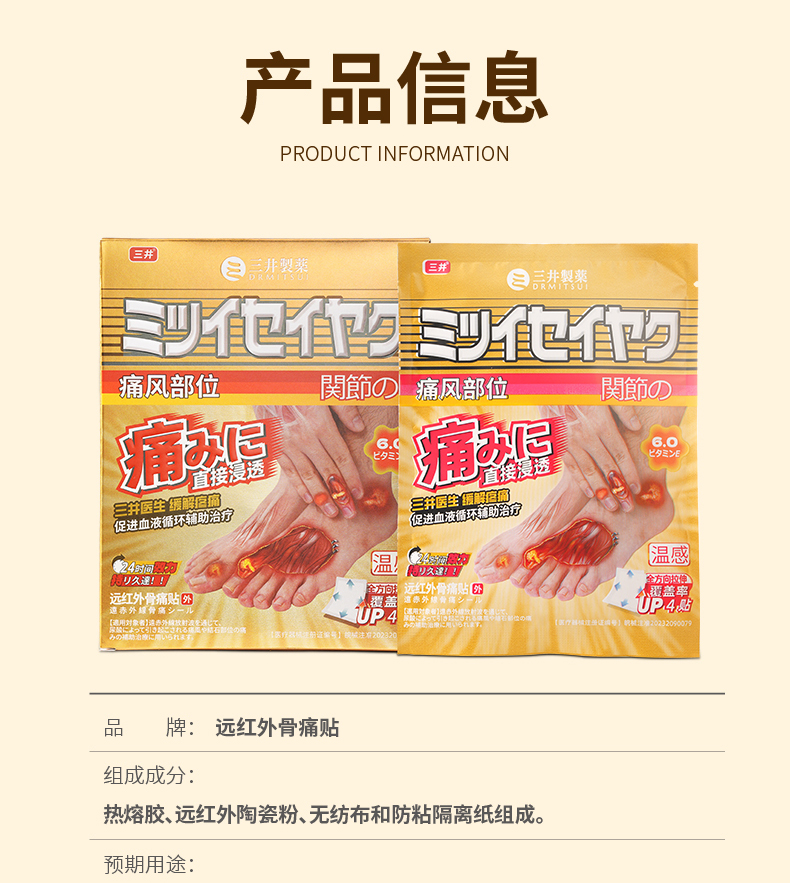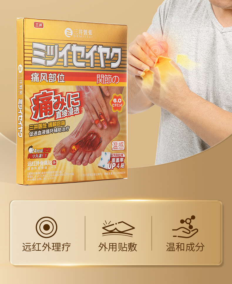 三井远红外骨痛贴 械字认证 痛风克星🌟【三井远红外骨痛贴】官旗59/盒 开团限时49.9/3盒 一盒仅需16块!一贴缓解全身疼痛‼️ 🇯🇵日本黑科技:远红外陶瓷粉 快速消炎止痛✅医疗器械标准生