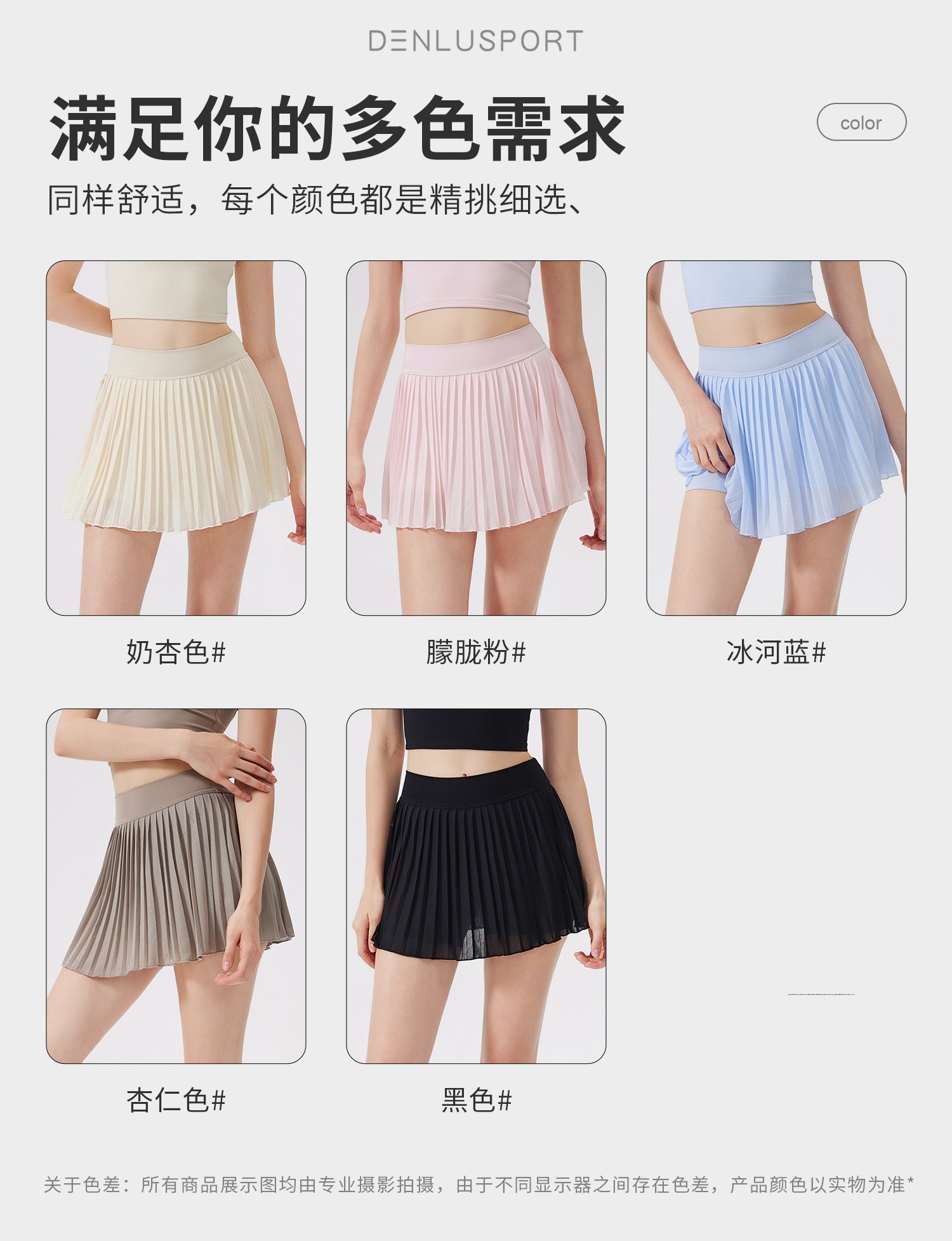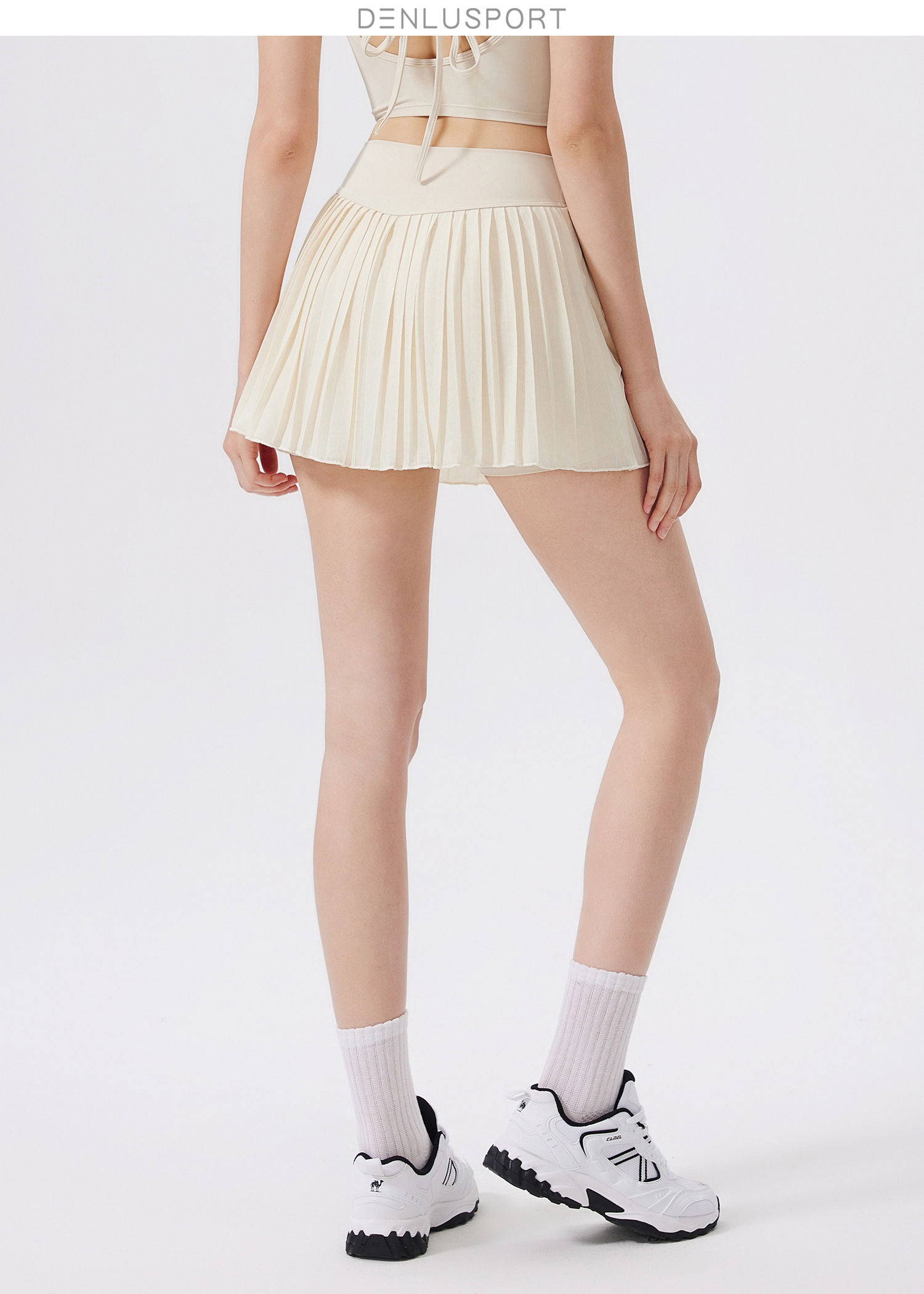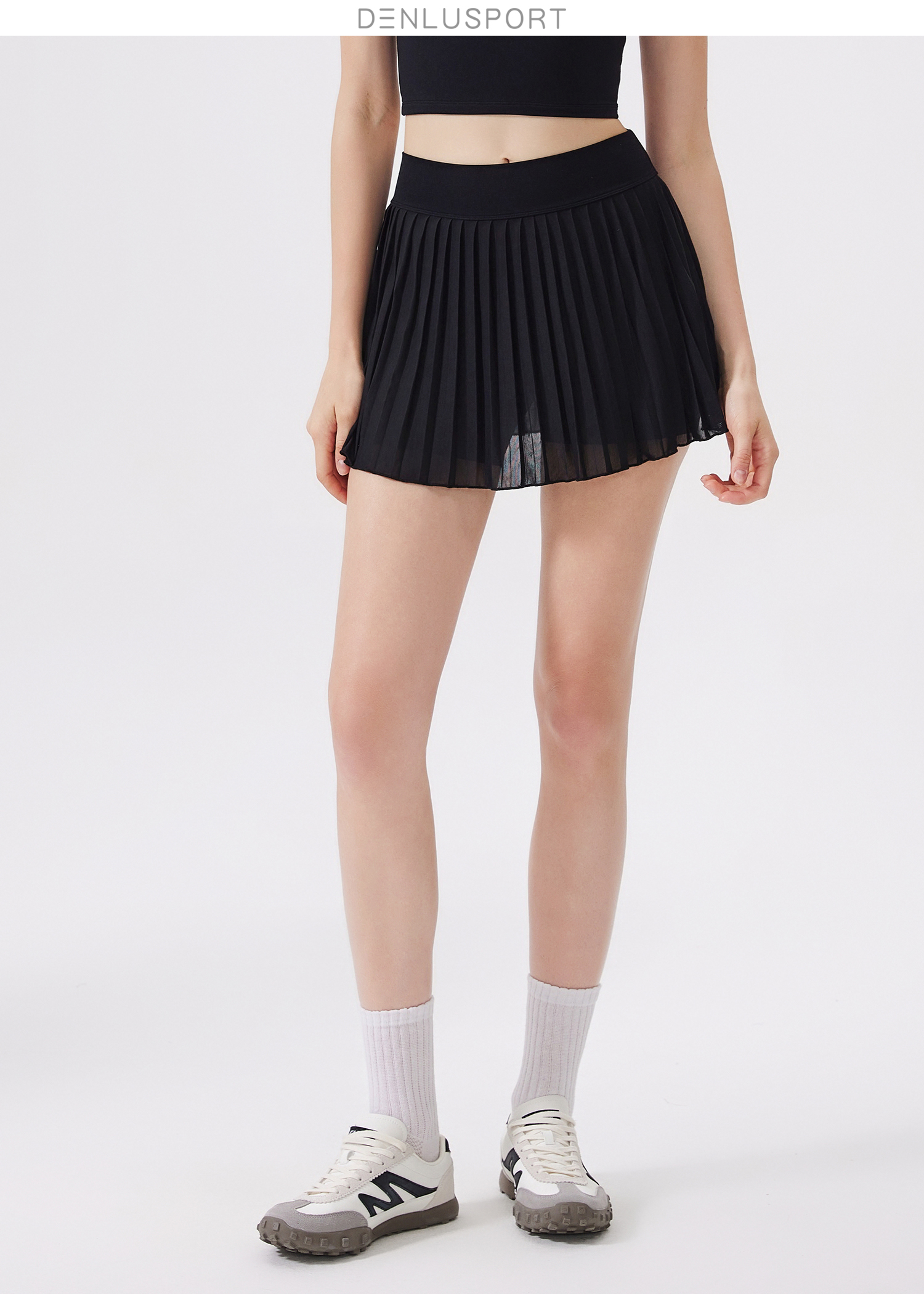 DENLUS夏季松紧高腰显瘦瑜伽短裙内衬放走光带口袋网球百褶裙休闲外穿DK95090