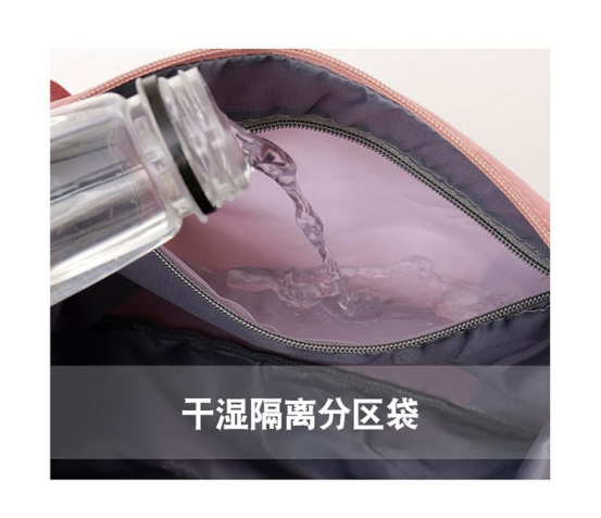 干湿隔离分区袋,贴心呵护 这个收纳袋的干湿隔离分区袋就完美解决了这个问题! 将湿的物品放在单独的隔层,避免弄湿其他物品 保持衣物的干爽整洁,让你的旅行更加井井有条