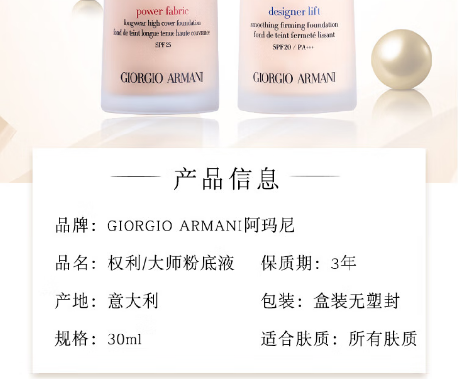 ARMANI阿玛尼粉底液 控油遮瑕水润
