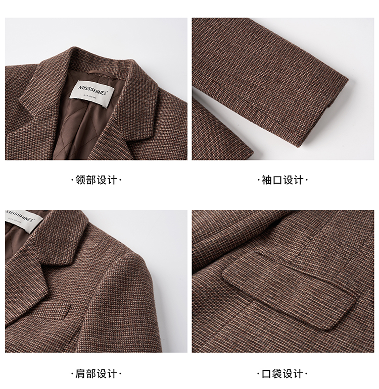 双股奢级混纺 羊毛粗花呢西装外套 透气不软塌的立体骨感 米思阳2025冬新款复古英伦风优雅修身西装外套女5626