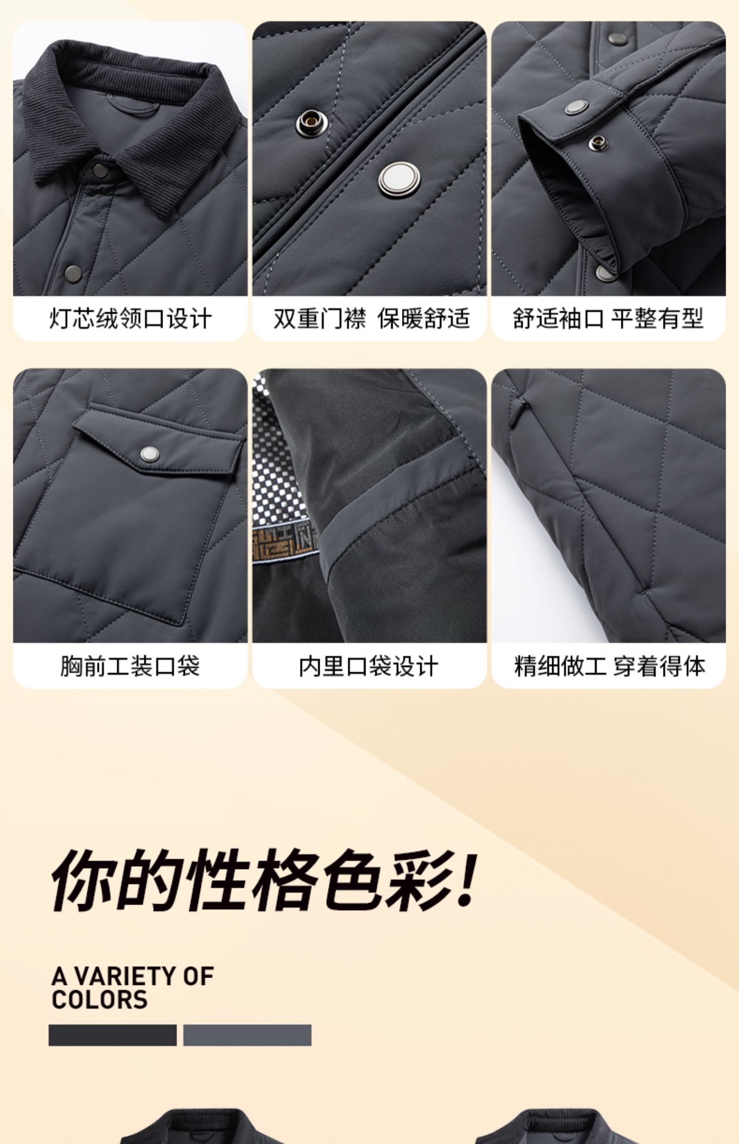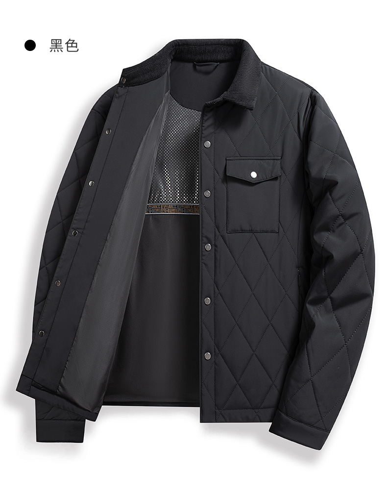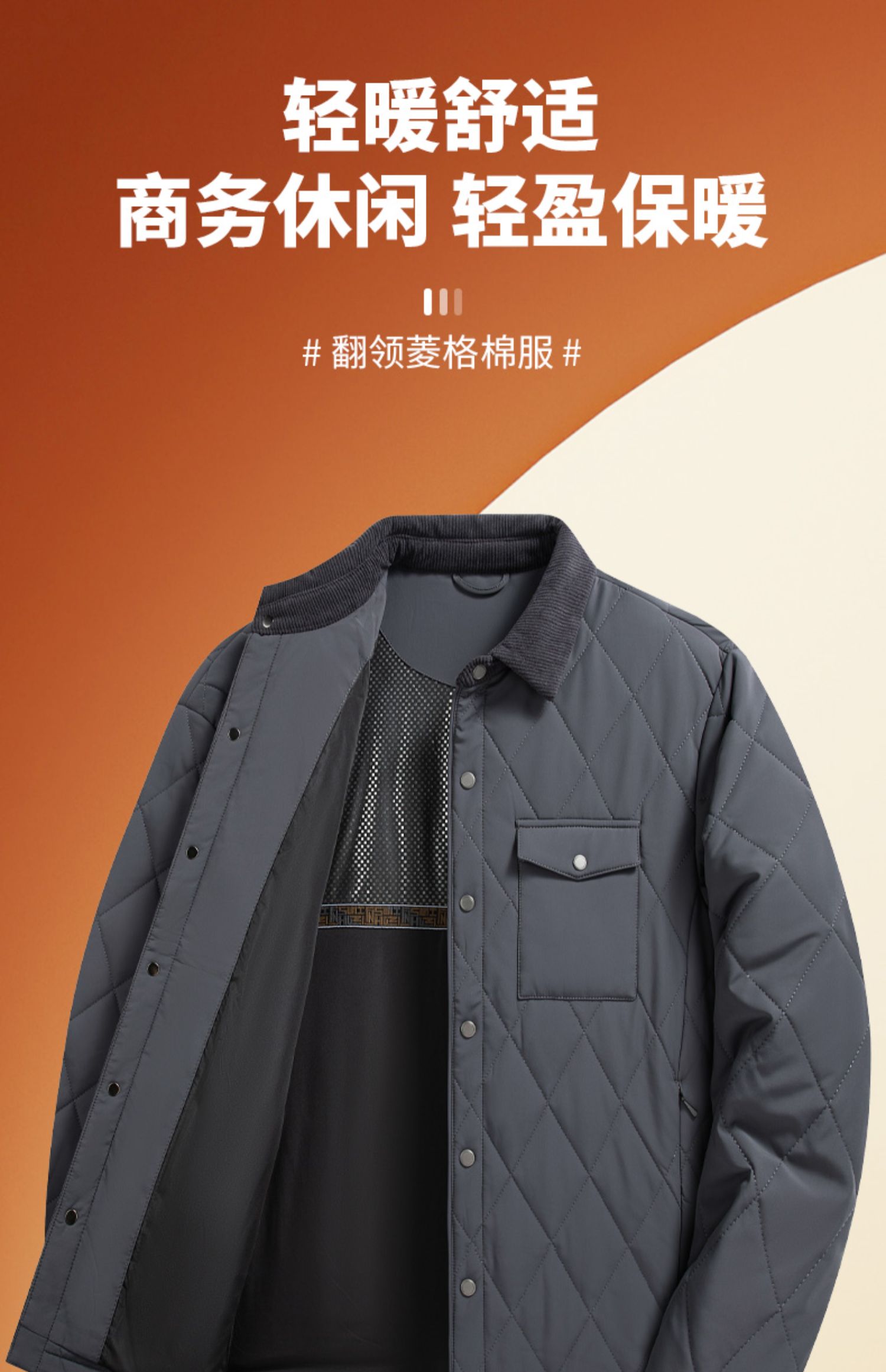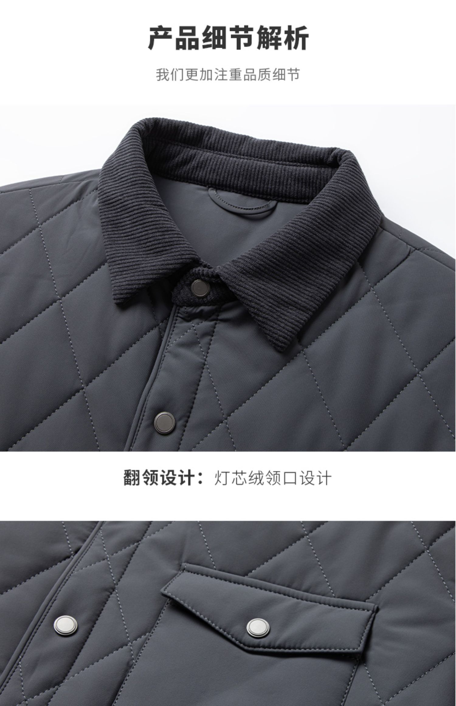 【内里夹棉&菱形格】圣得西休闲基础灯芯绒翻领薄棉服男款冬季