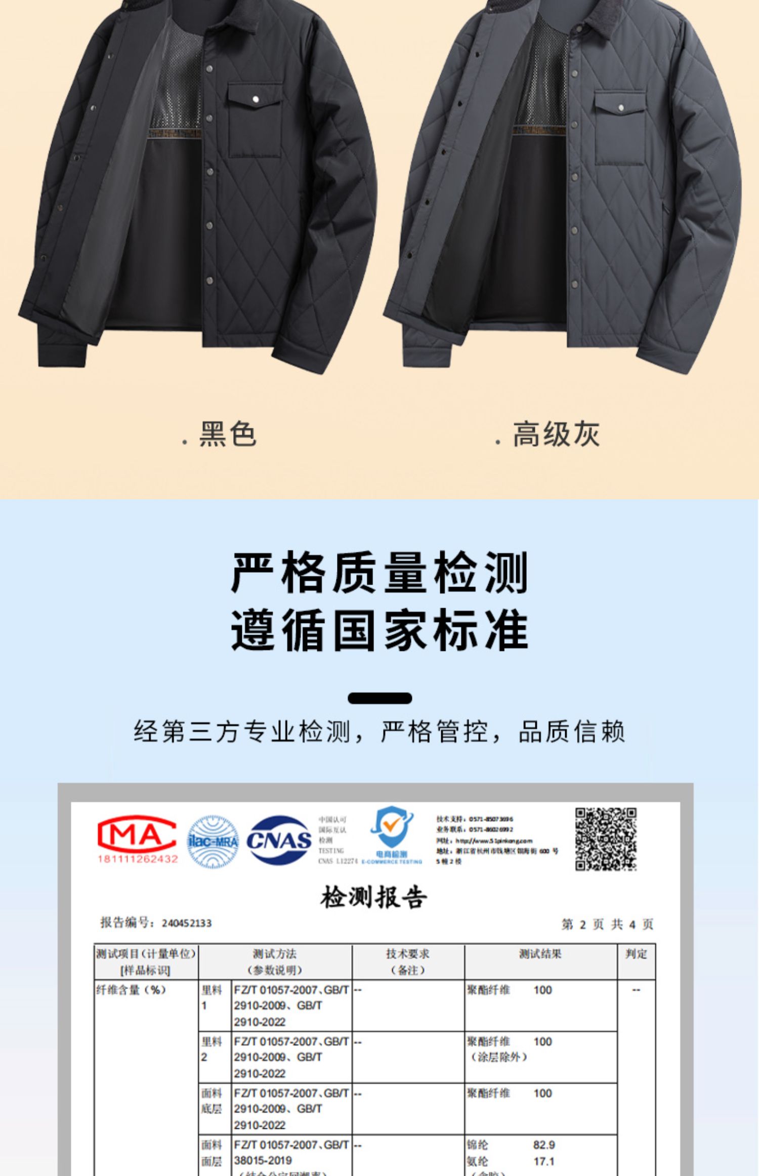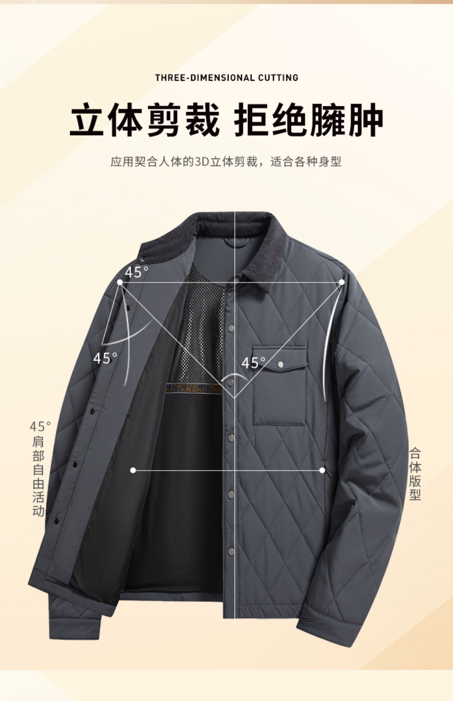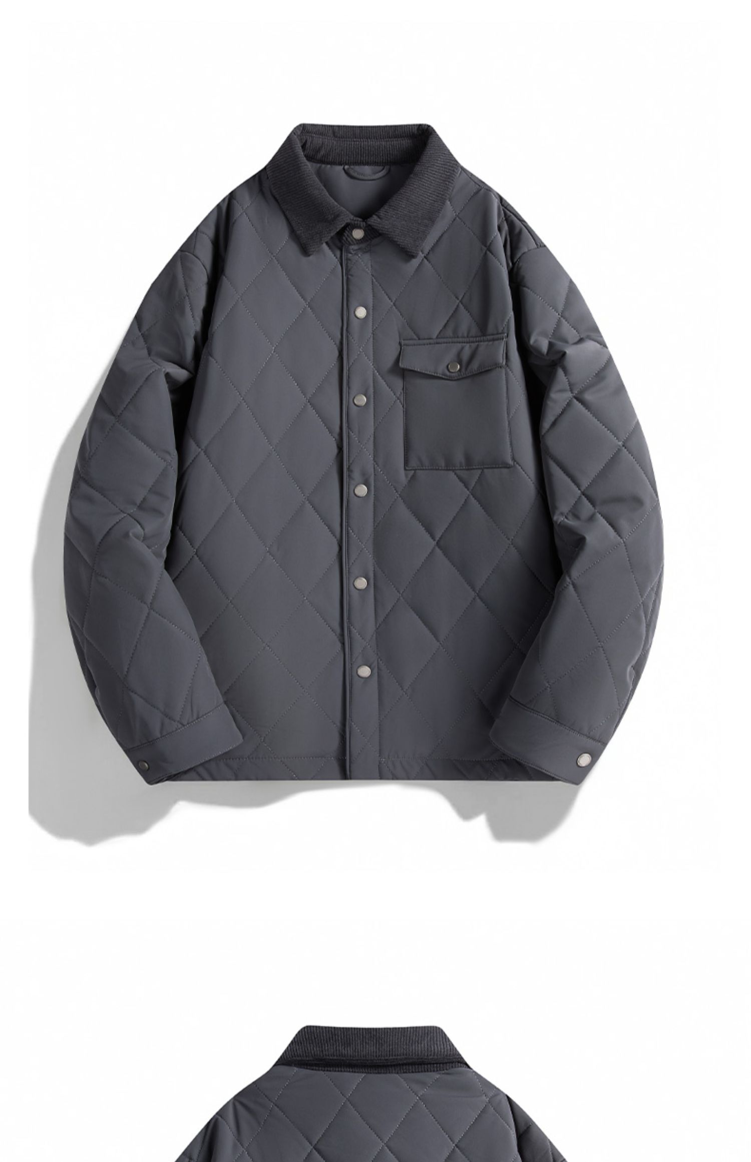 【内里夹棉&菱形格】圣得西休闲基础灯芯绒翻领薄棉服男款冬季