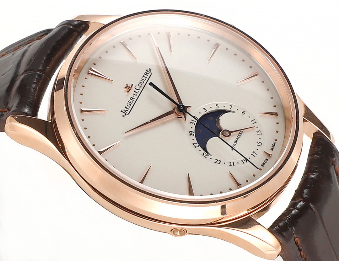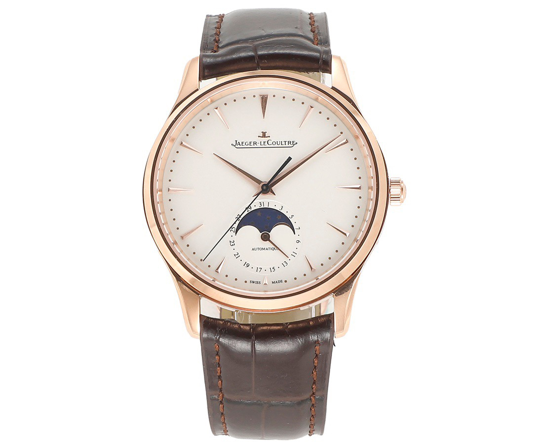 这款ZF积家大师系列1362520玫瑰金月相腕表外观简洁利落,表盘设计经典隽永。ZF的真月相功能显示令表盘尽显活力,宛如一和谐美妙的腕上芭蕾。透过蓝宝石水晶底盖,机芯运行一目了然。如果你很喜欢这个系列或者真月相功能。诚意推荐你ZF出品的积家月相大师。