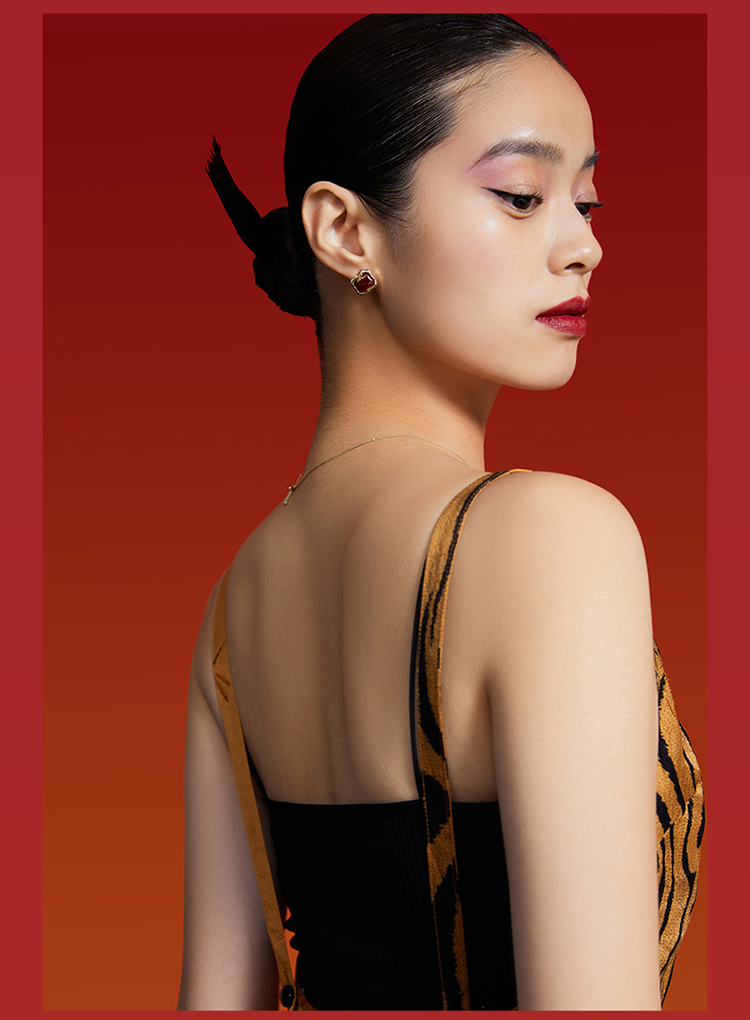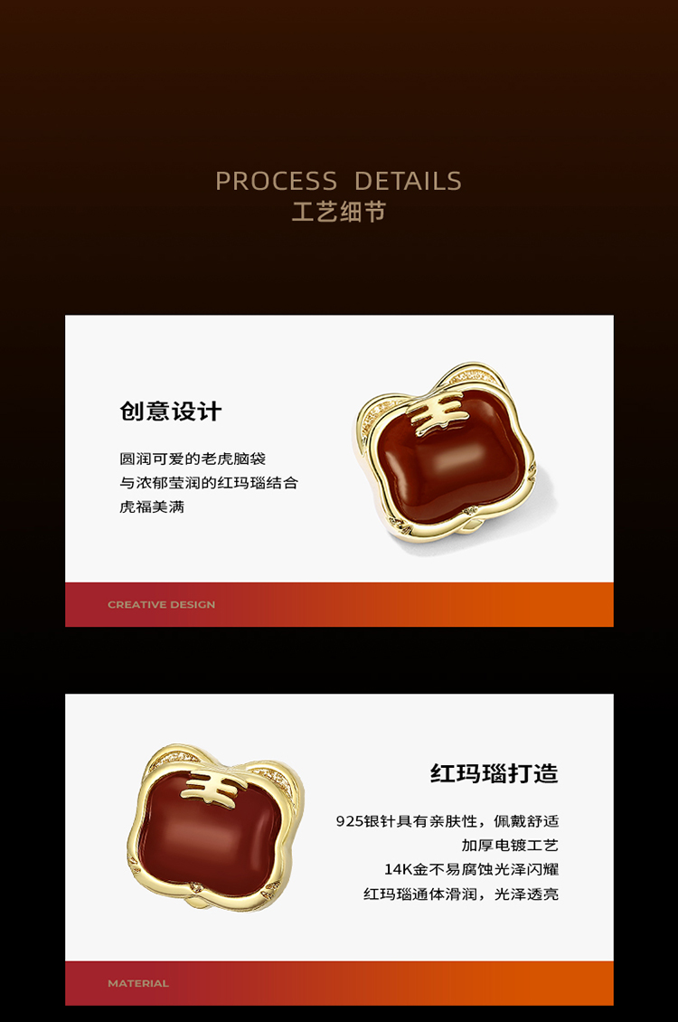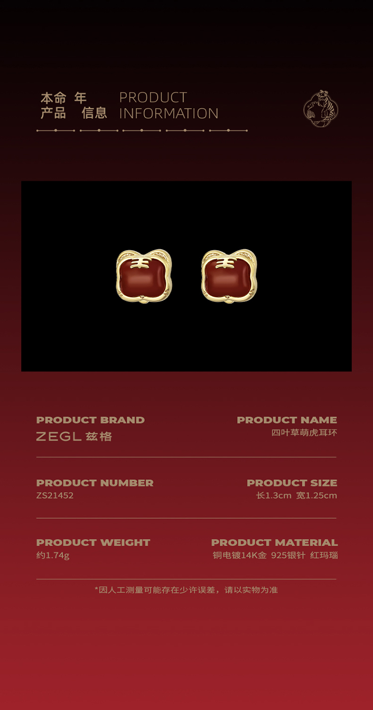 ZEGL设计师虎年本命年礼物四叶草萌虎耳钉女耳环925银针秋冬耳饰