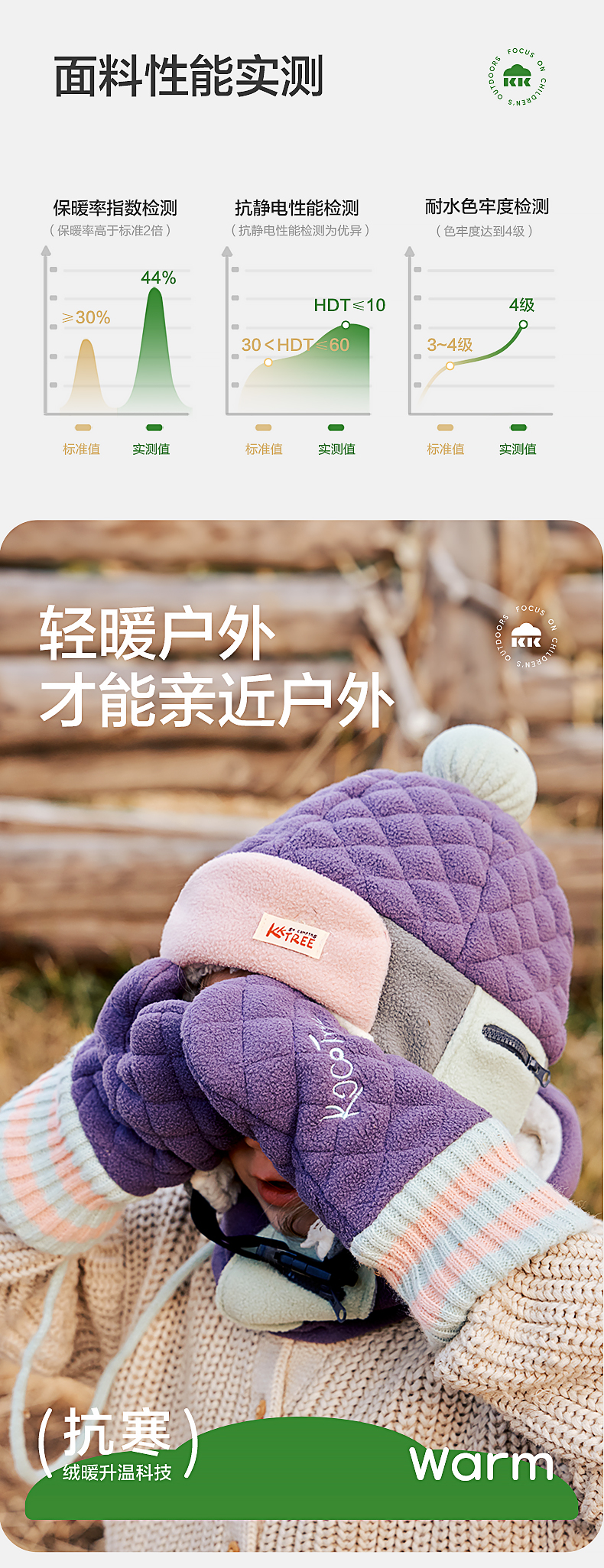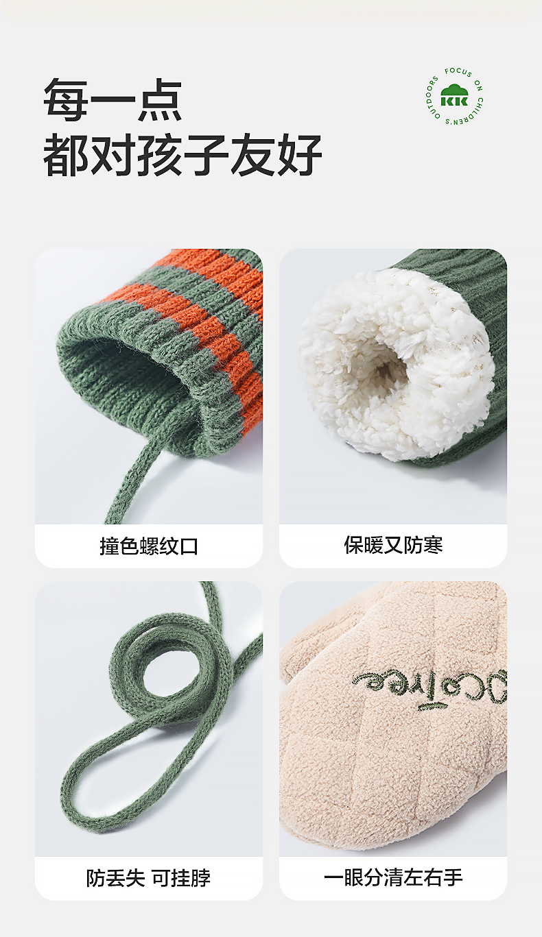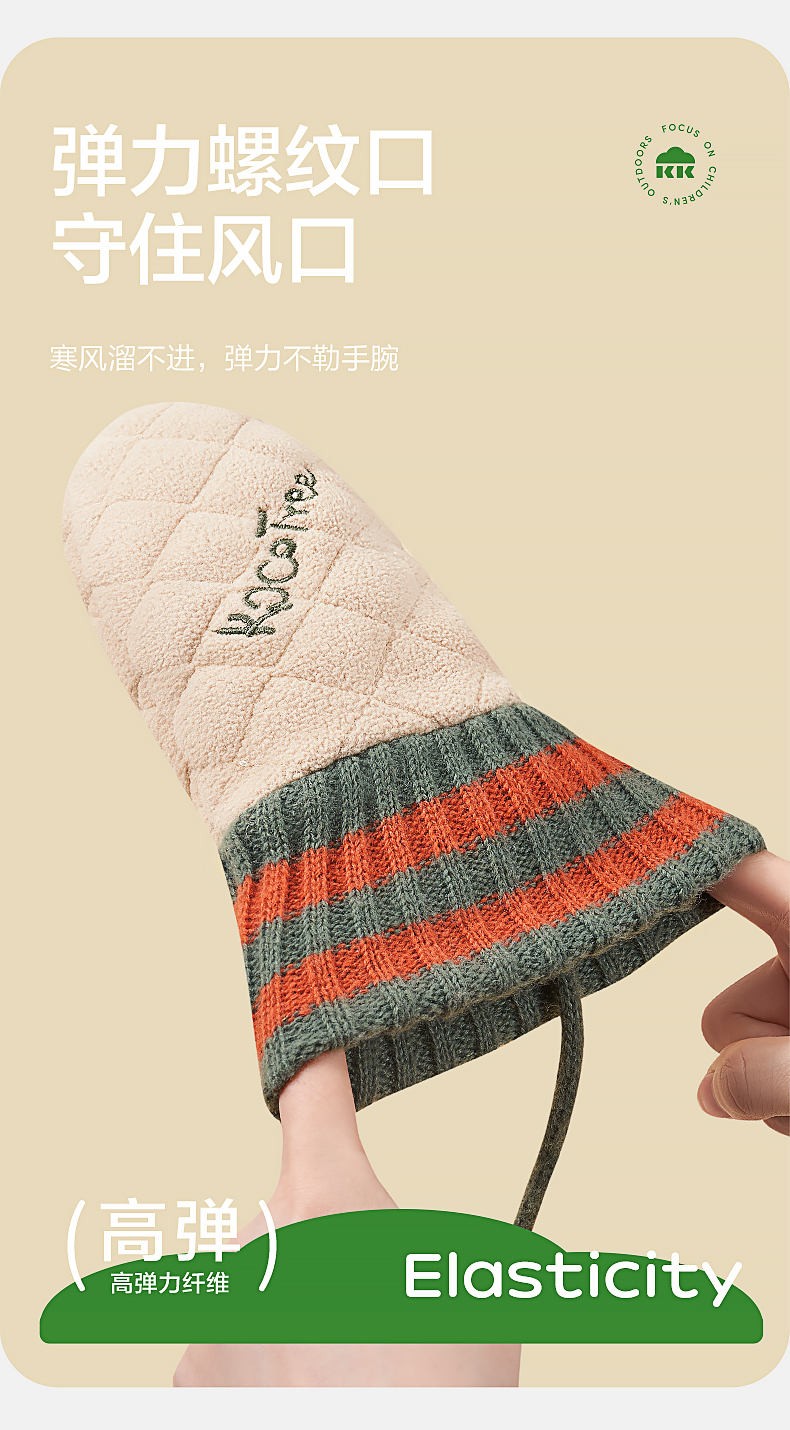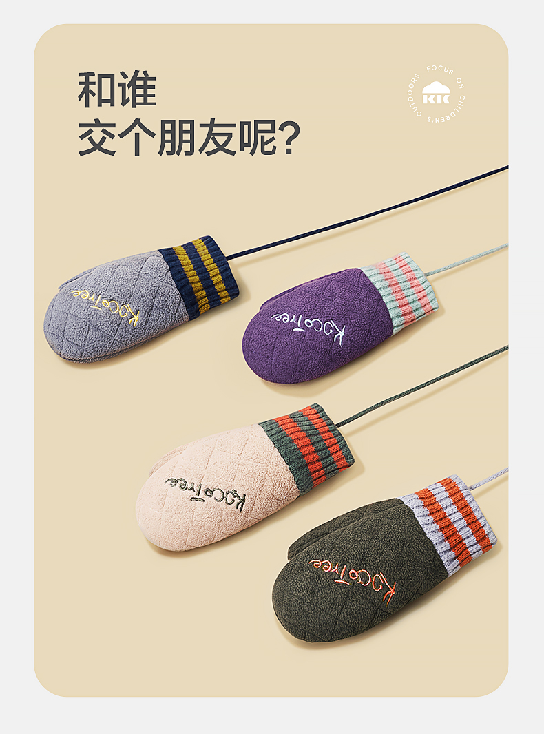 KK树儿童手套冬季男童女孩小学生专用连指宝宝保暖加厚A类抗静电野营日记手套