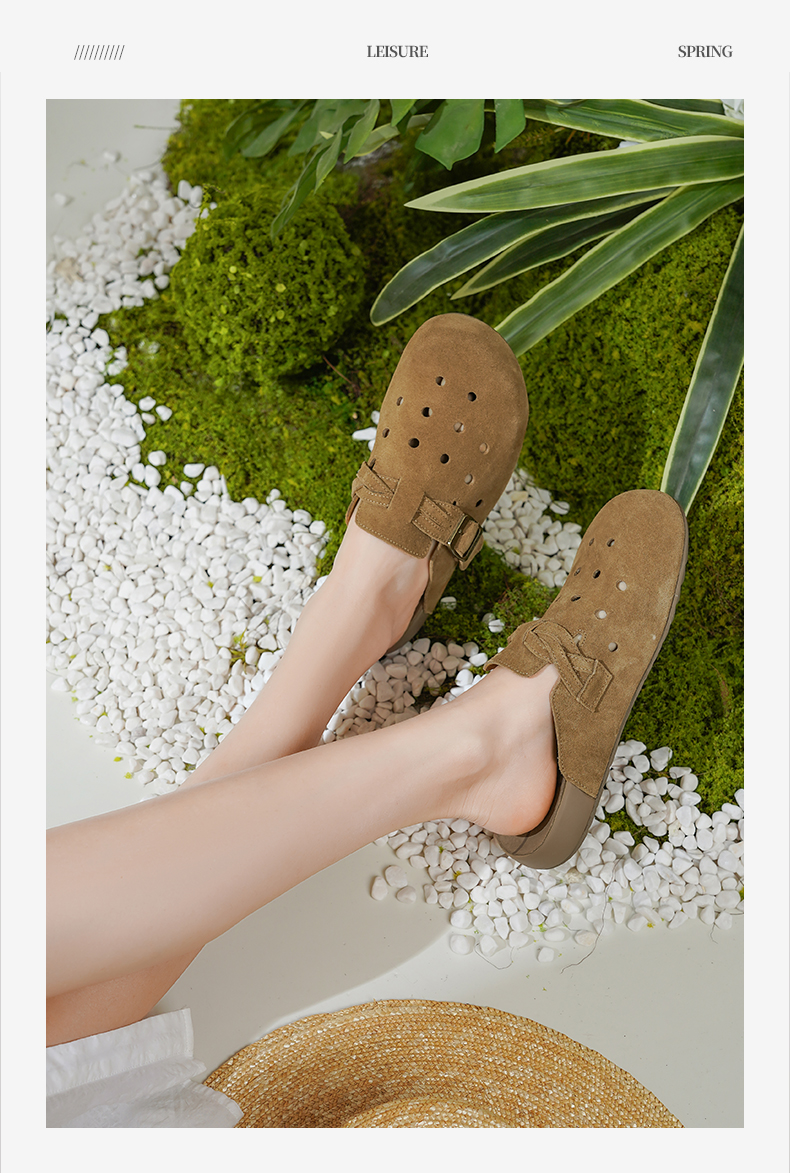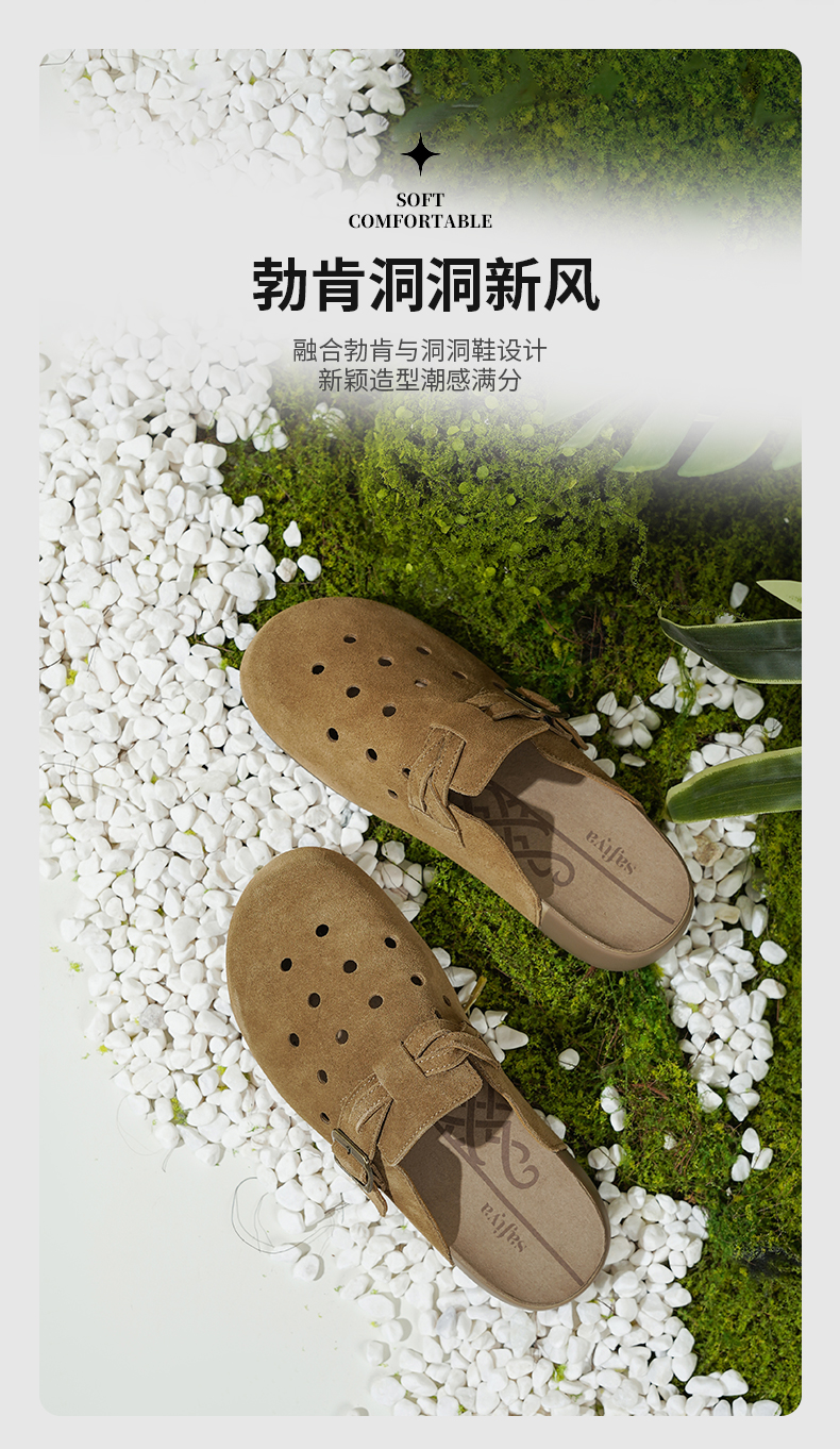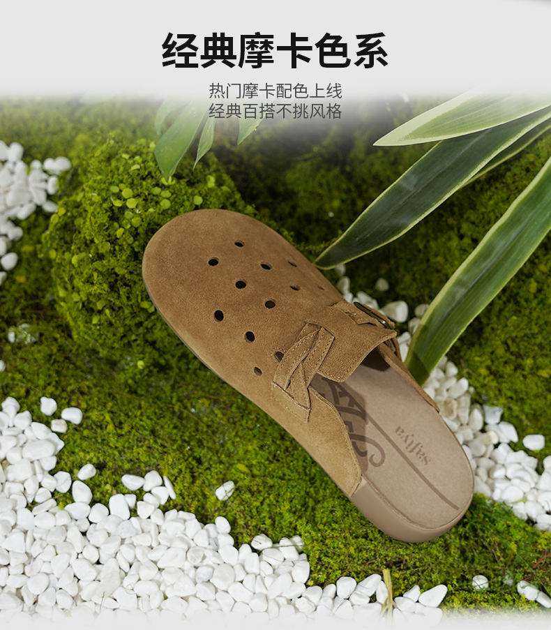 Safiya/索菲娅2025索菲娅咖啡庄园复古软底休闲外穿勃肯洞洞鞋SFD1110406