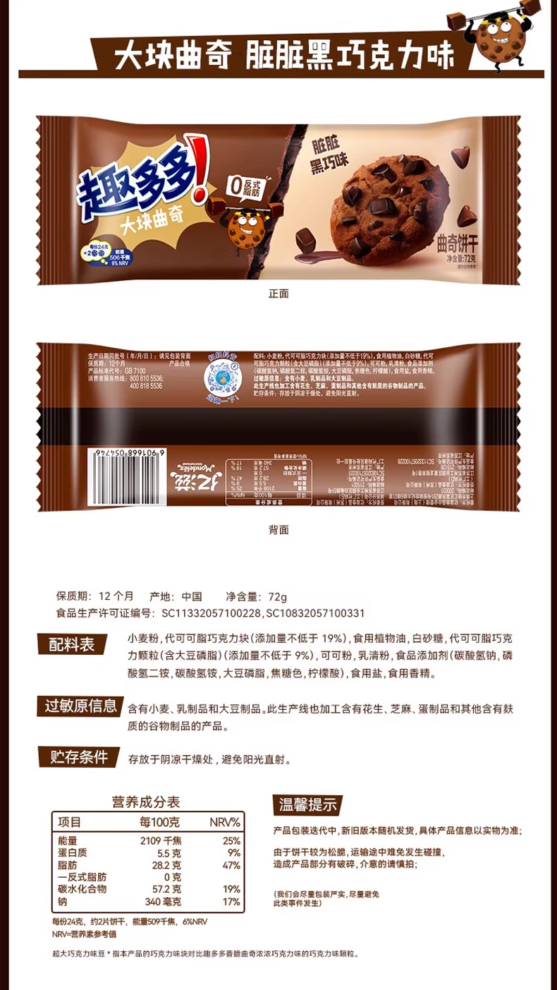72g趣多多脏脏黑巧克力味曲奇
