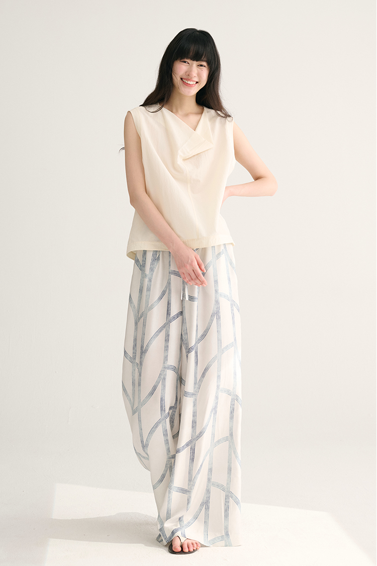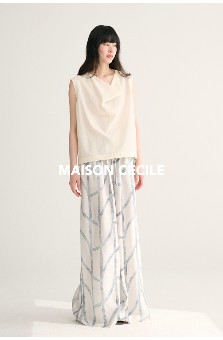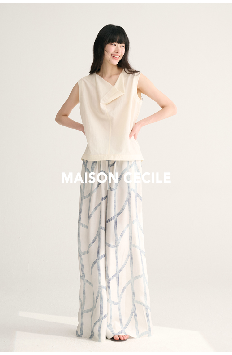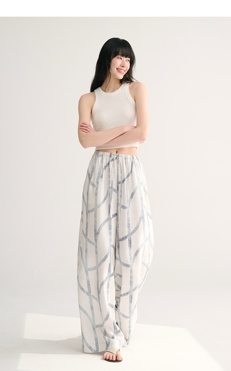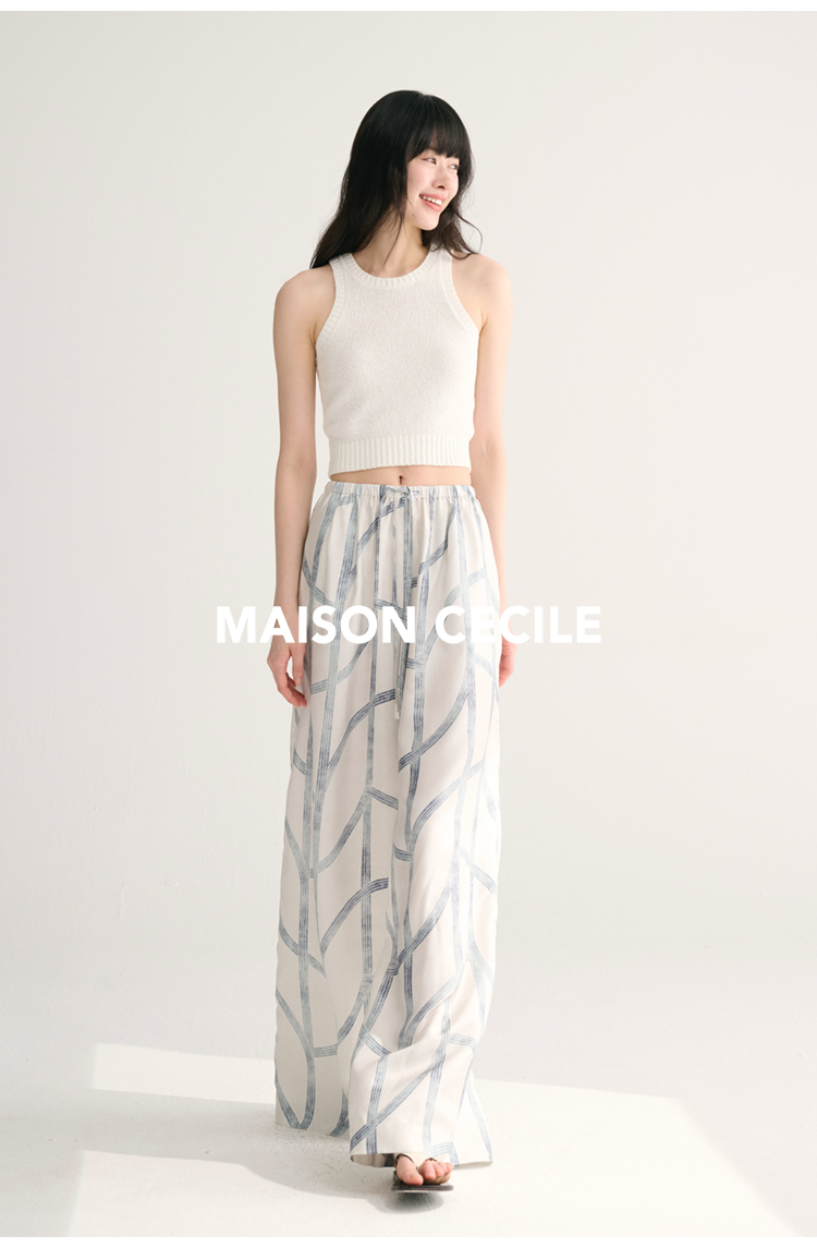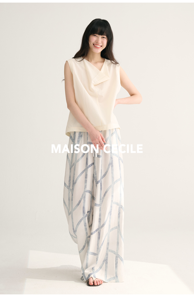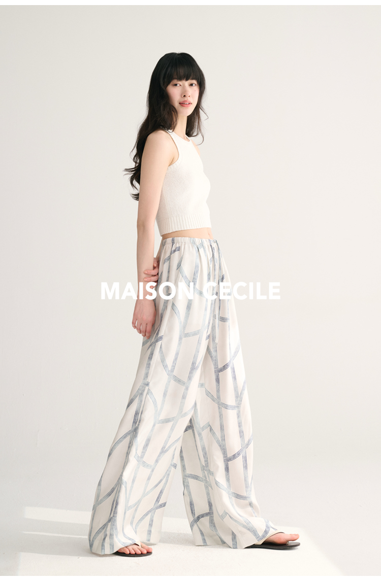 MAISON CECILE独家印花/100%桑蚕丝轻薄飘逸垂荡感透气慵懒阔腿裤