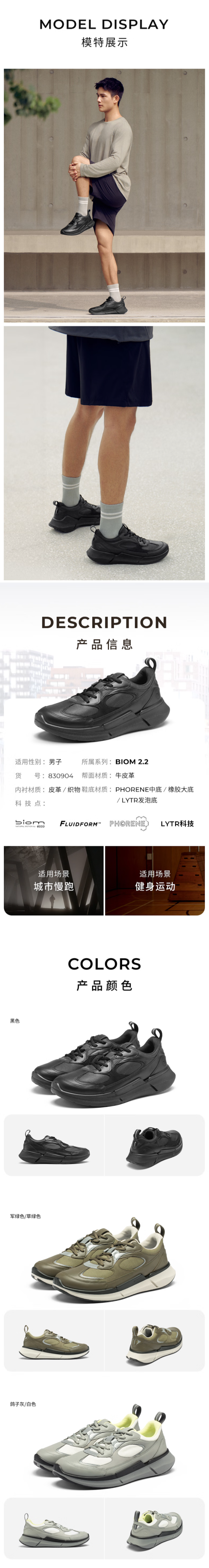 【休闲运动 健步2.2系列】爱步 ECCO BIOM2.2 轻量舒适跑步鞋男鞋明星同款 830904