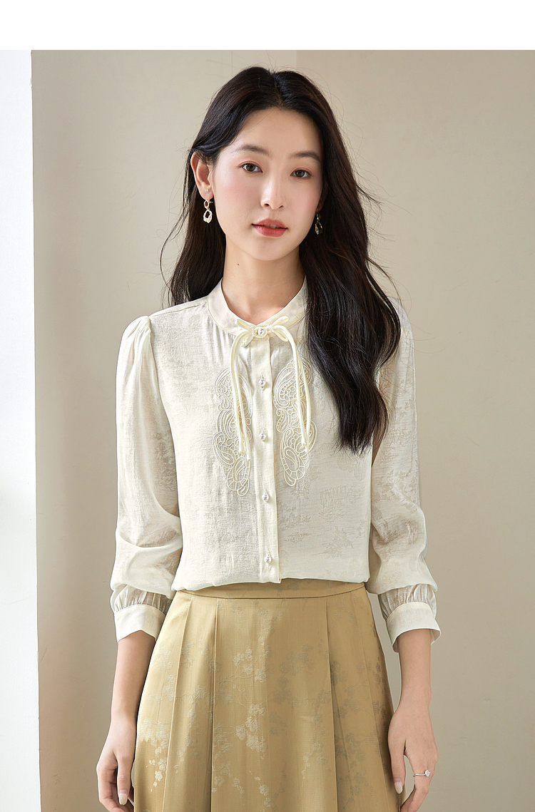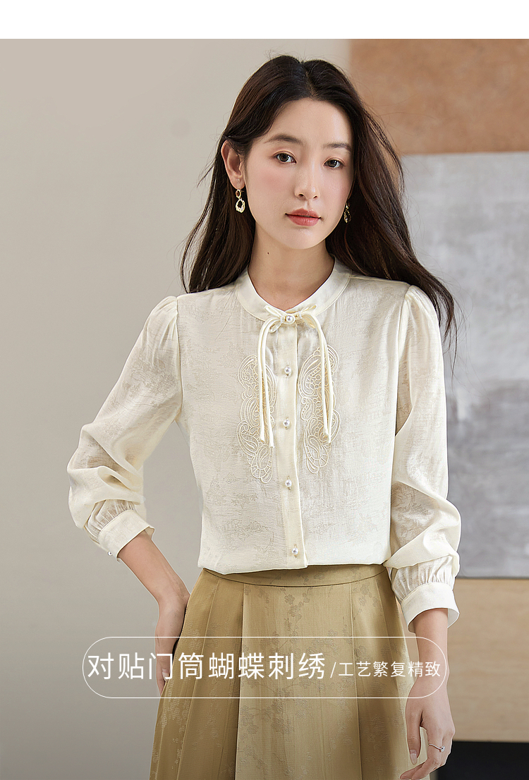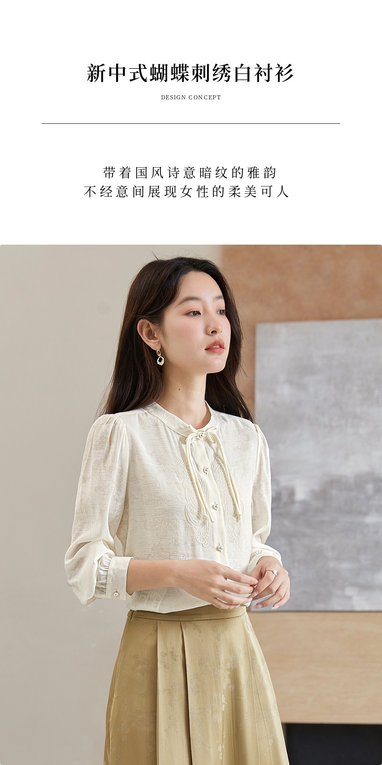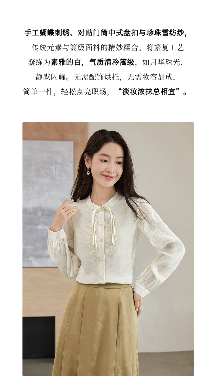 【79元福袋,不支持退换】熙世界新中式蝴蝶刺绣衬衫2025秋新款国风暗纹雪纺衬衣长袖上衣