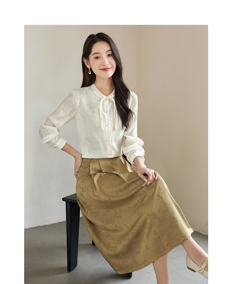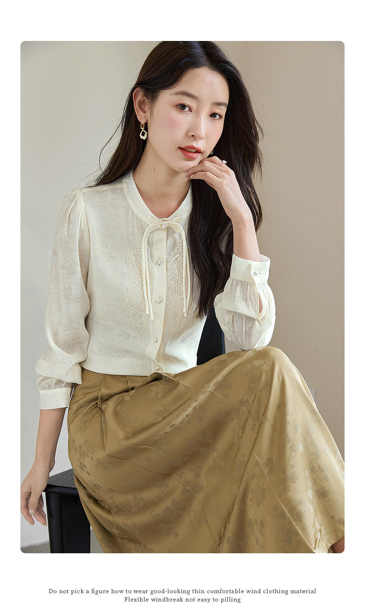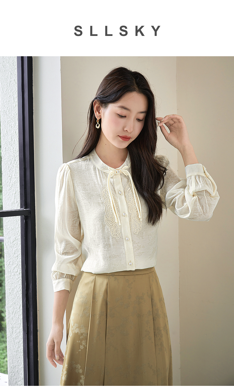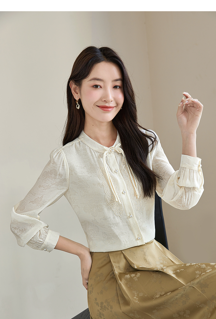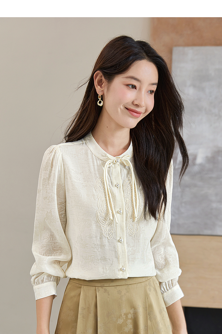 【79元福袋,不支持退换】熙世界新中式蝴蝶刺绣衬衫2025秋新款国风暗纹雪纺衬衣长袖上衣