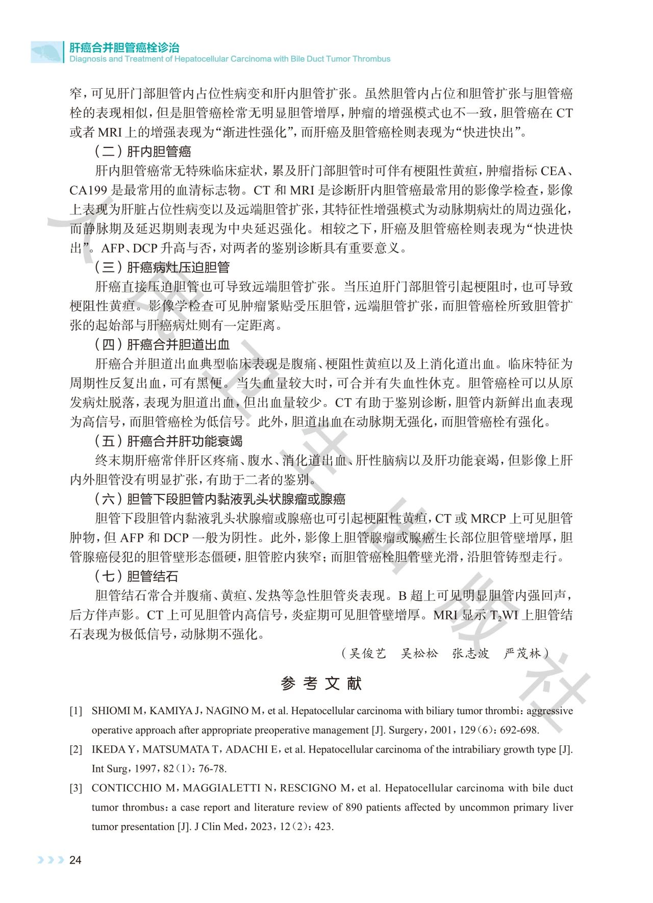 并胆管癌栓的分型、诊断策略、治疗方法等进行了深