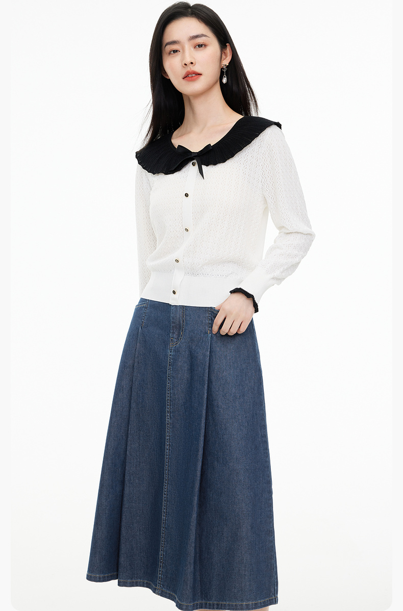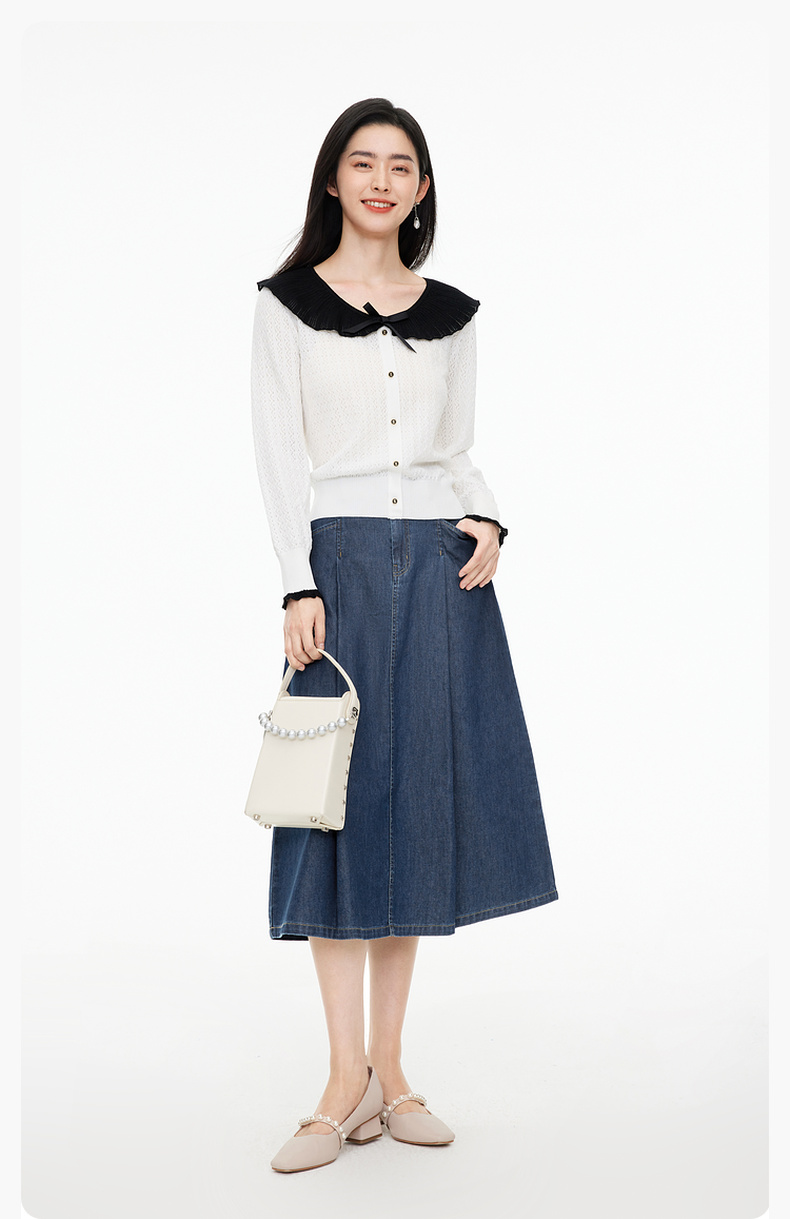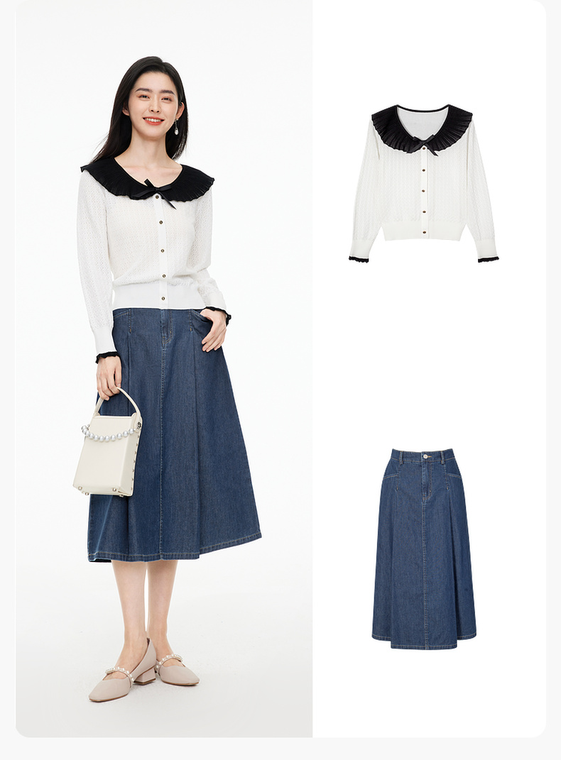 【商场同款】诗凡黎复古阔腿牛仔裤25秋新款丹宁弯刀裤3G9151701