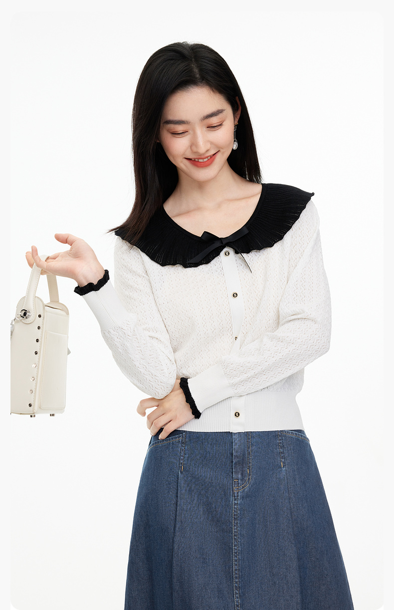 【严选】诗凡黎纯羊毛好运喵刺绣针织衫7G9132851