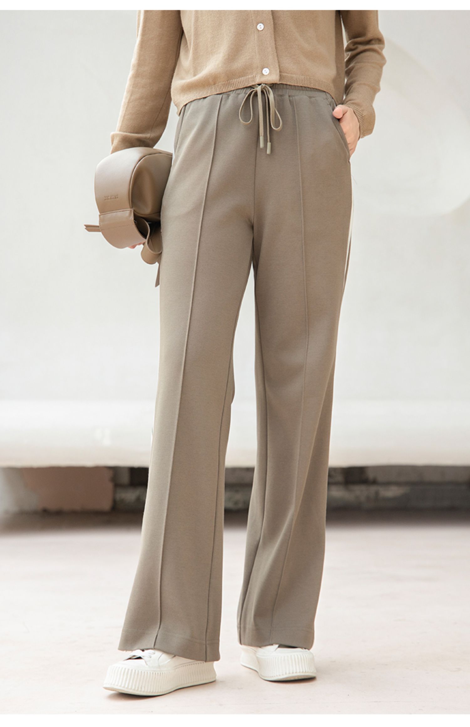oldcolour简约休闲裤春季新款松紧高腰阔腿直筒长裤女P11073409