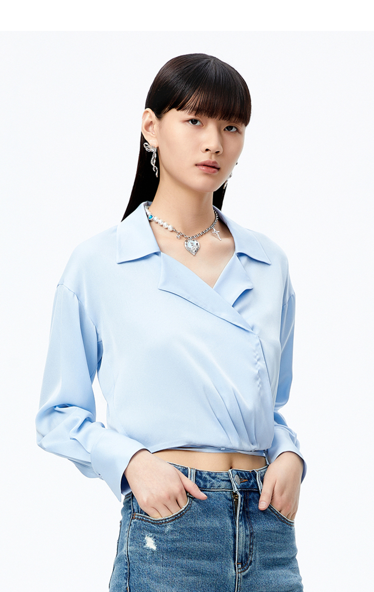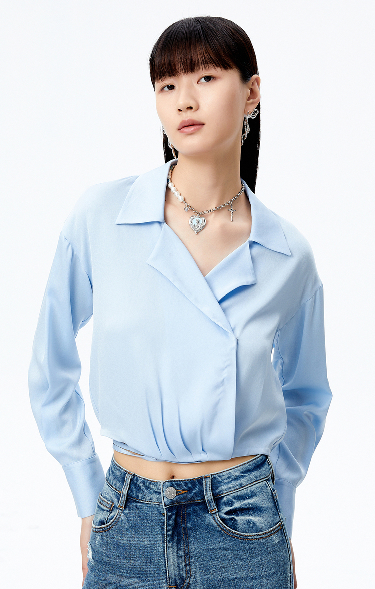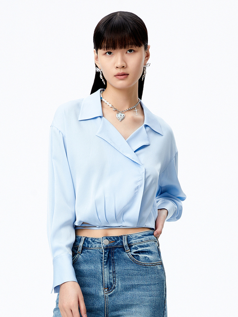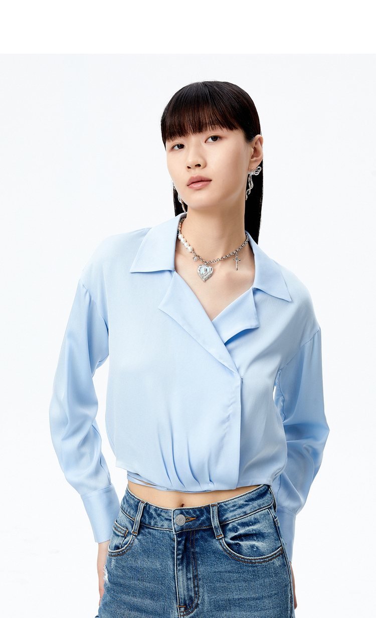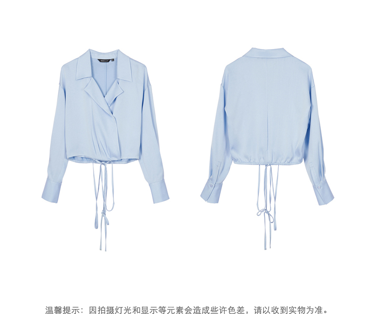 NEELLY纳俪商场同款翻领衬衫女秋季新款短款简约套头衫后系带设计N22072R01025