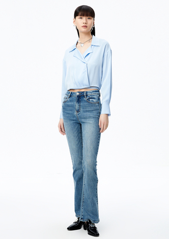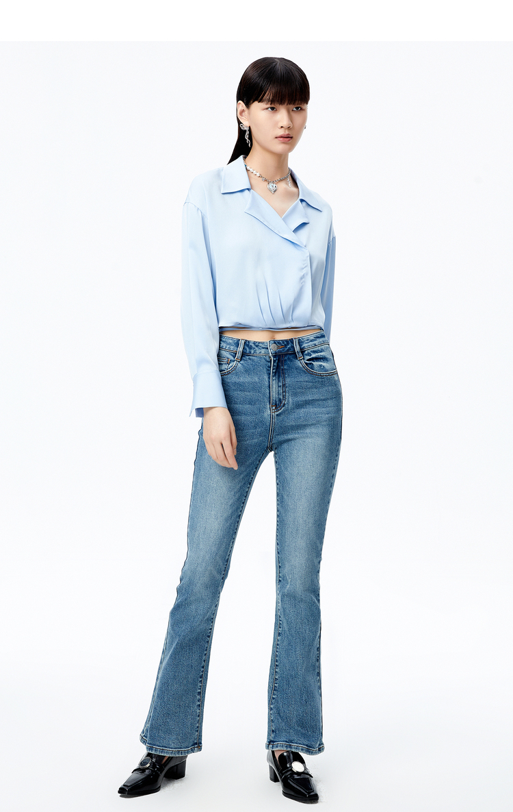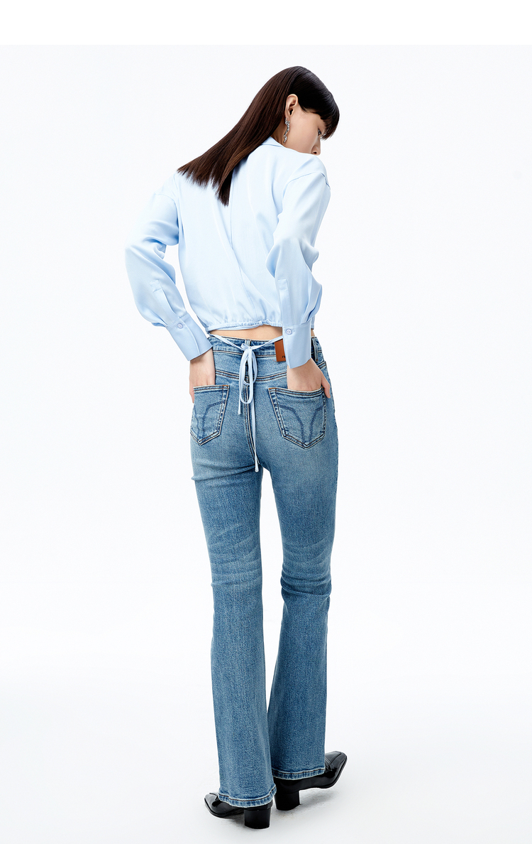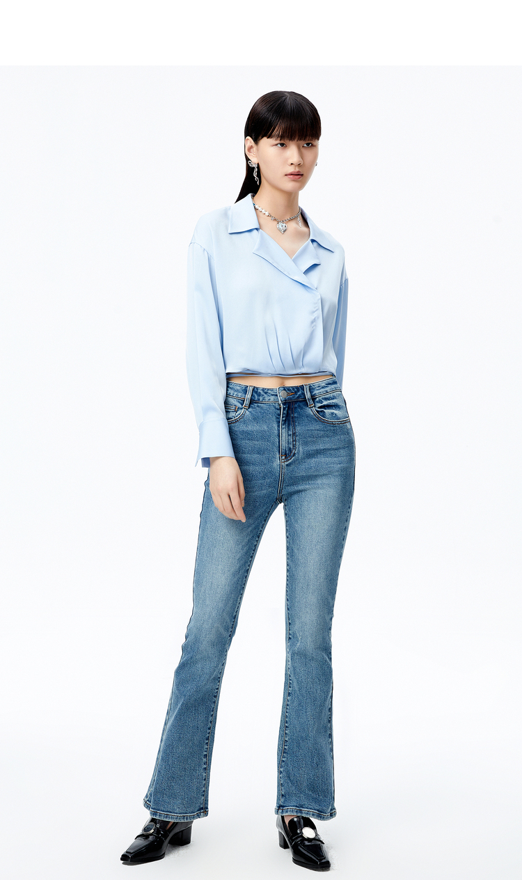 NEELLY纳俪商场同款翻领衬衫女秋季新款短款简约套头衫后系带设计N22072R01025
