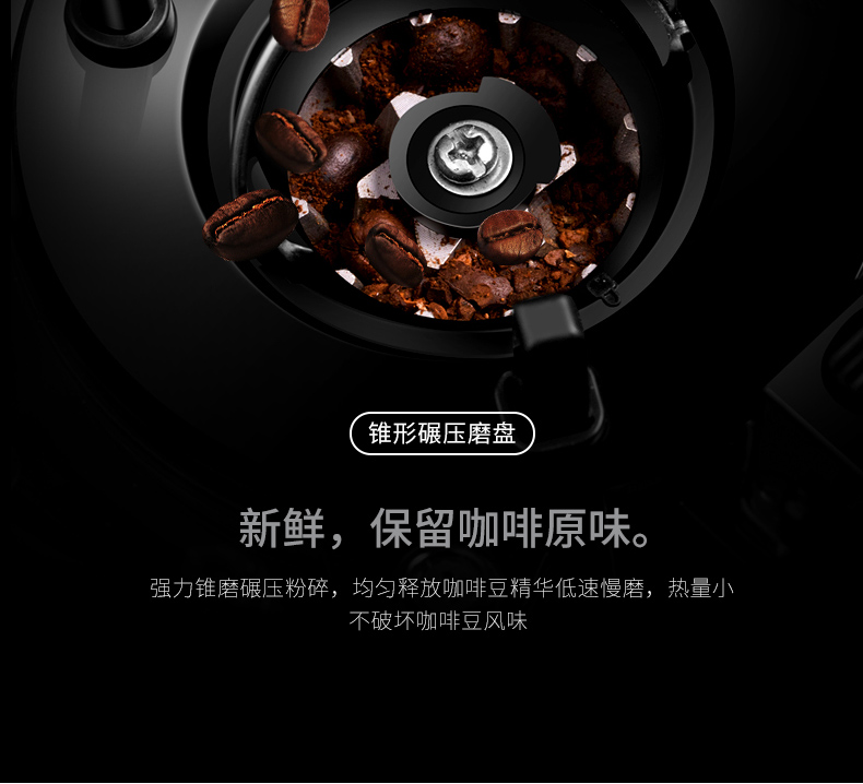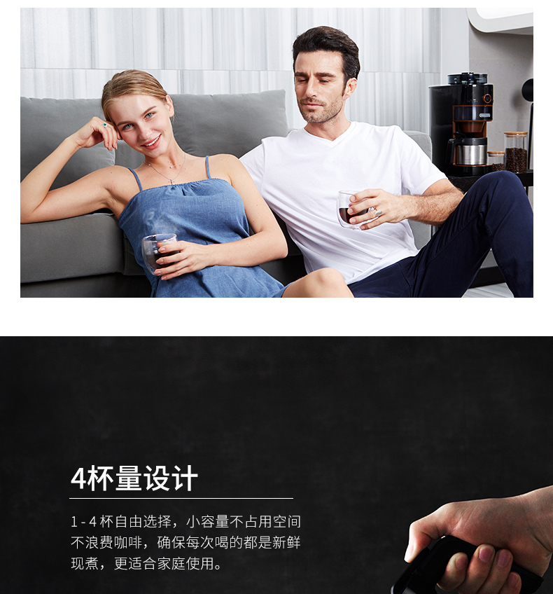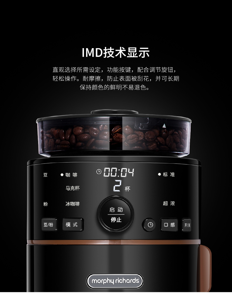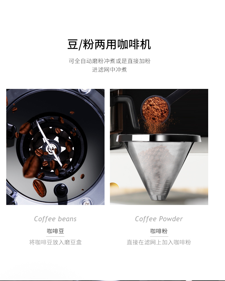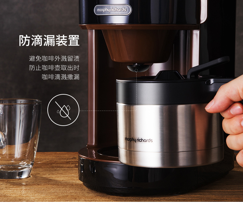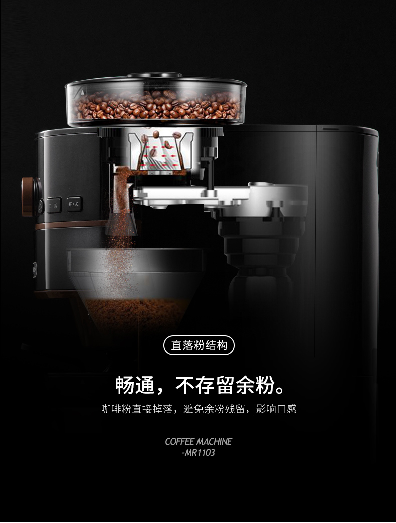 摩飞(Morphyrichards)MR1103咖啡机全自动磨豆家用咖啡机不锈钢保温咖啡壶 豆粉两用