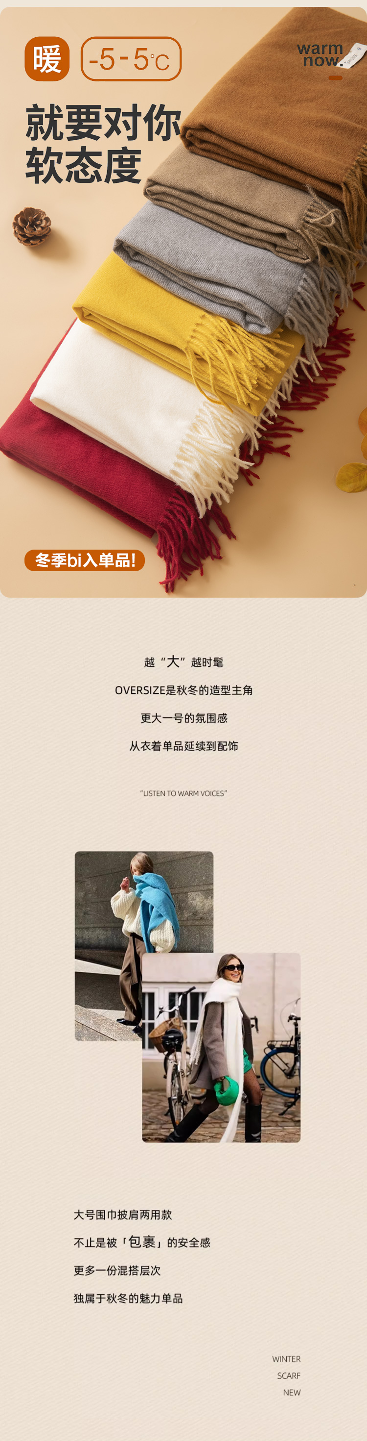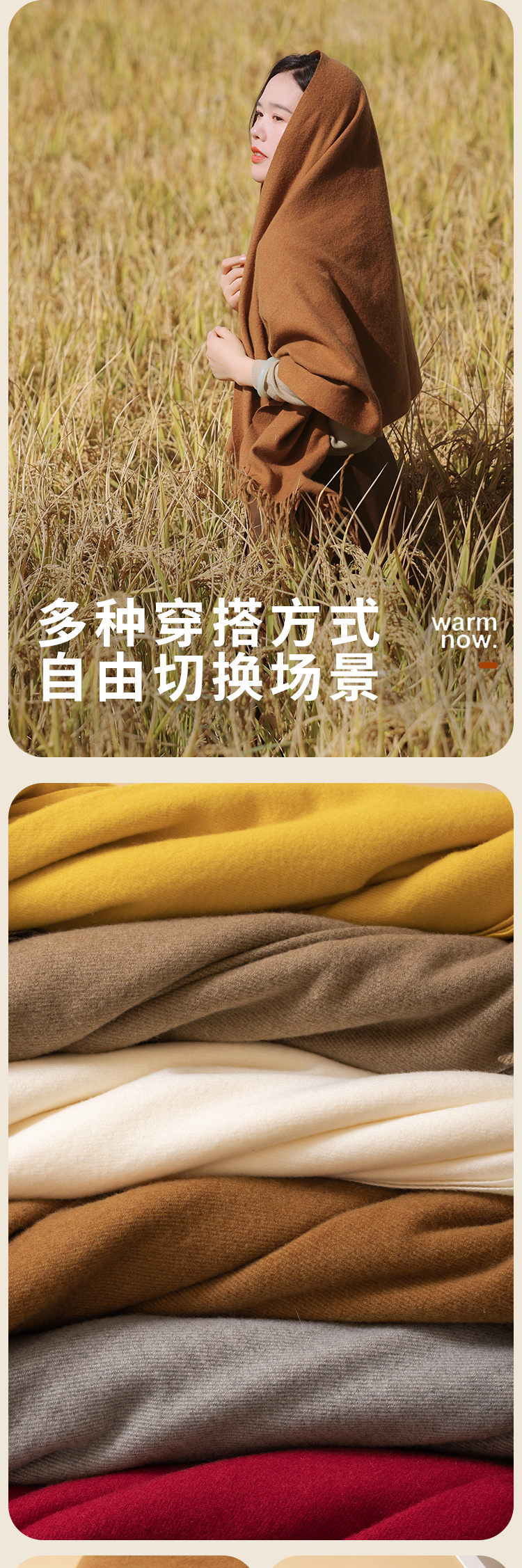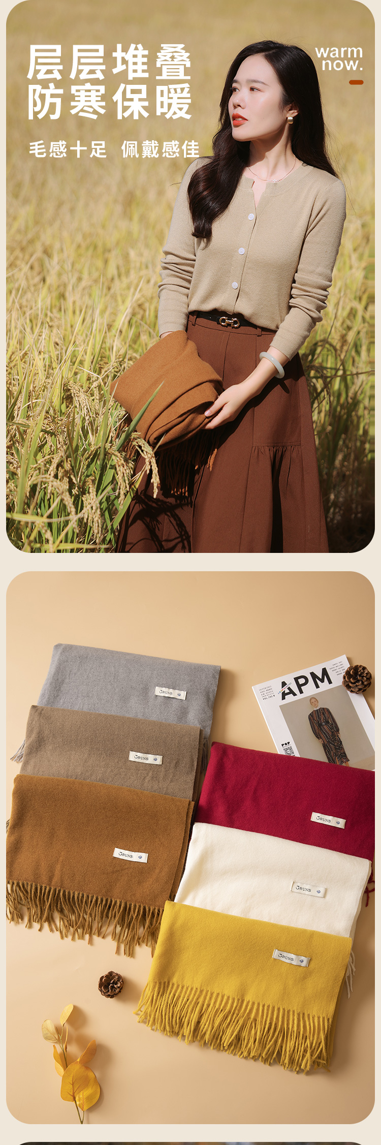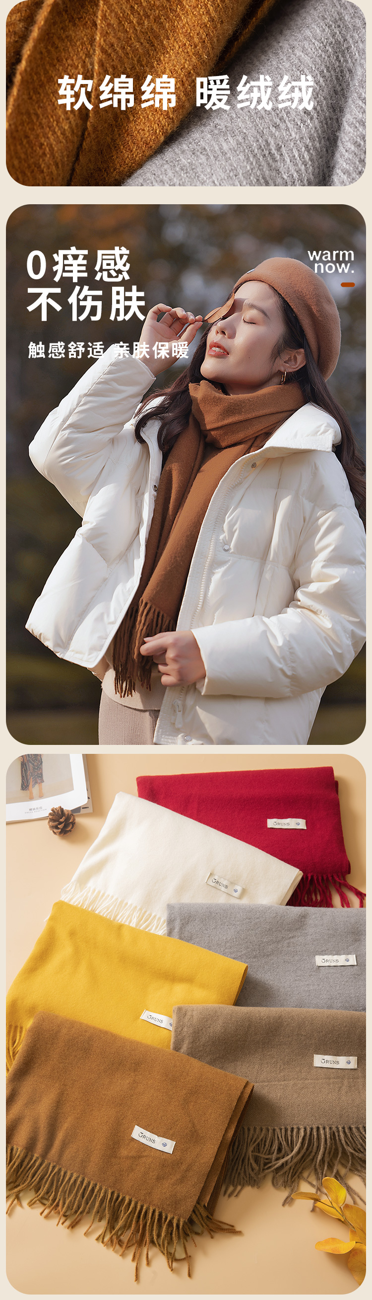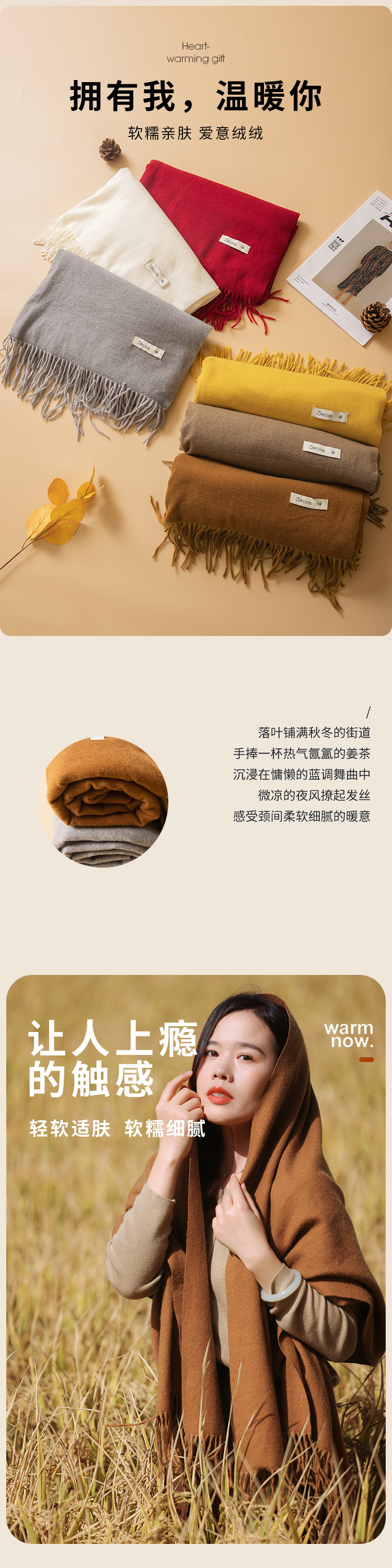 红念纯色围巾女高级百搭款