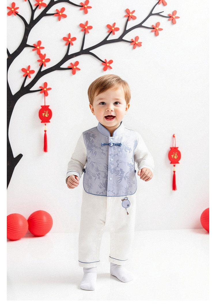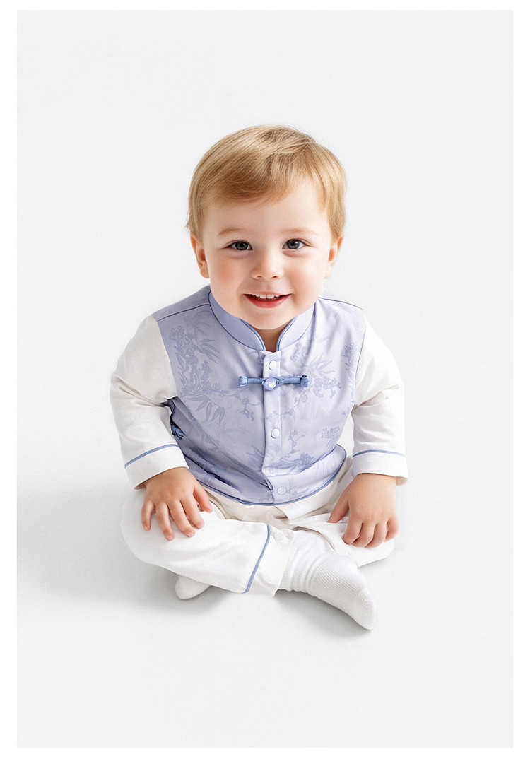 英氏婴儿连身衣男宝宝长袖连体衣新中式帅气外出爬服YRHAJ1S004A